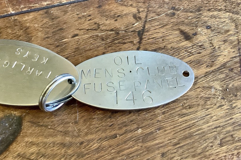 The Vintage 1970’s Starlight Key Ring with 3 Metal Oval Tags is a unique collectible piece perfect for those who appreciate retro nostalgia. Made of silver metal and featuring engraved details, this detachable keyring is a charming addition to any collection. The oval tags reference an establishment from the 1970s, making it a distinctive and eye-catching accessory for enthusiasts of vintage memorabilia. Way cool!