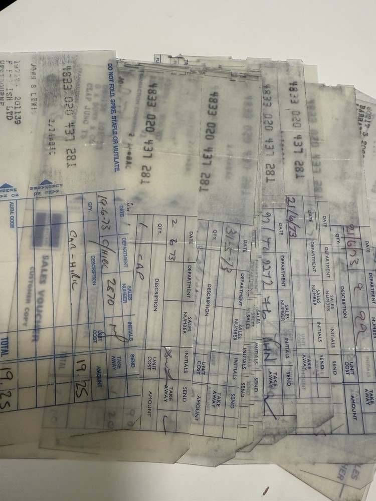 Vintage 1970s UK Sales Vouchers & Receipts – Original Paper Ephemera Lot Authentic collection of original 1970s British sales vouchers and carbon copy receipts, used before electronic cash registers and POS systems. These are genuine handwritten retail and banking transaction slips, featuring Barclaycard / Barclays Centre Northampton, British Rail, and London retail locations. ✔️ Original 1973 dated documents ✔️ Carbon copy sales slips / charge vouchers ✔️ Early credit card & retail history (Barclaycard) ✔️ UK banking & transportation ephemera ✔️ Perfect for collectors, historians, designers, collage & junk journal artists 📌 DETAILS: • Era: 1970s (dated 1973) • Origin: United Kingdom • Type: Sales vouchers / charge slips / receipts • Material: Paper with carbon copies • Condition: Vintage used condition — age wear, discoloration, handwriting, stamps (see photos) • Quantity: Lot of original documents (exact count as shown) 🎯 PERFECT FOR: • Ephemera collectors • Vintage banking & retail history • Barclaycard / UK finance collectors • Junk journals, scrapbooking, collage art • Film & set decoration (1970s authenticity) 📦 Sold as a lot – items are 100% original, not reproductions.(c 12)