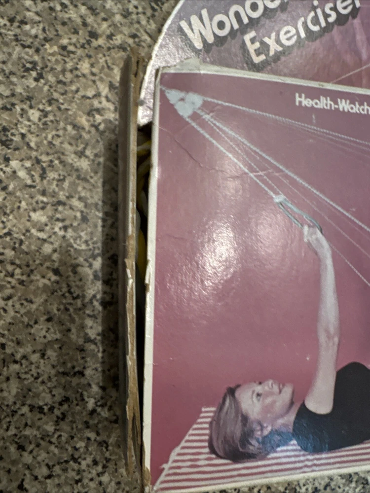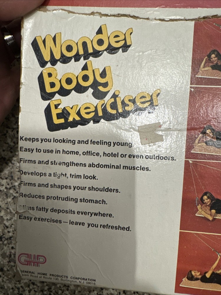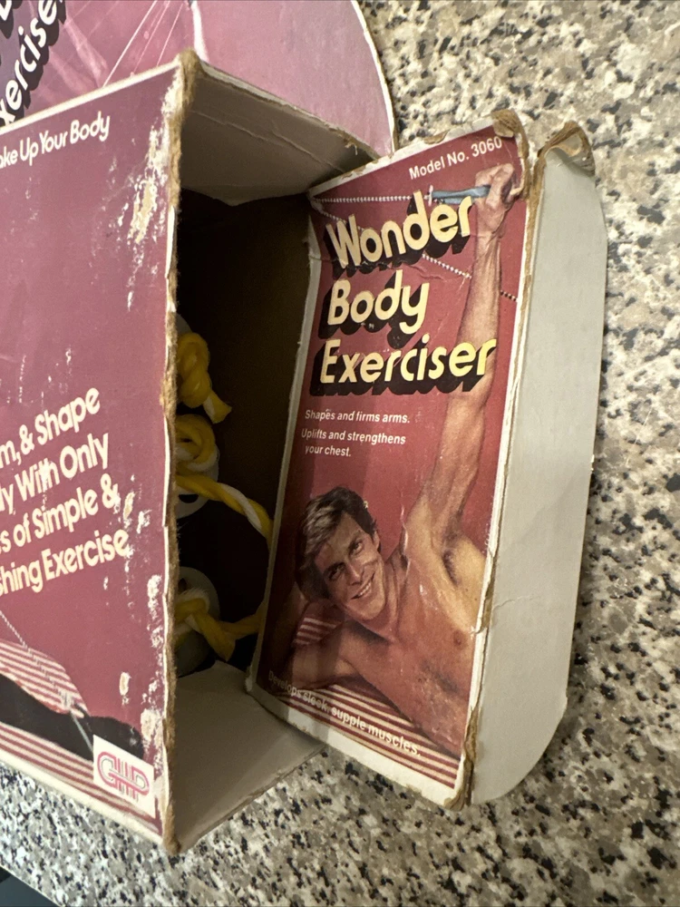 This vintage Wonder Body Exerciser #3060 is a must-have for fitness enthusiasts looking for a home use option. The cable pulley resistance system is perfect for targeting muscles in the chest, legs, arms, and abdominal areas. The nylon sheath and nylon material make it durable and long-lasting. The item comes with its original instructions and box, making it easy to get started on your fitness journey. The pulley system is designed to provide a challenging workout, and the item weighs only 1lb and has a width of 10". This fitness equipment is ideal for those who are looking for a vintage workout experience.