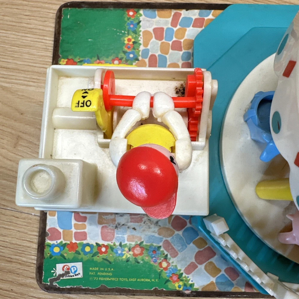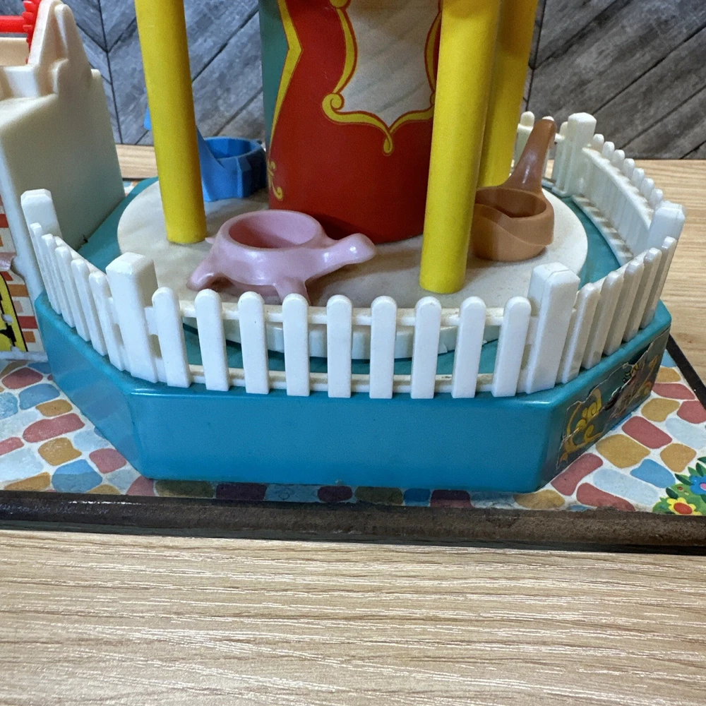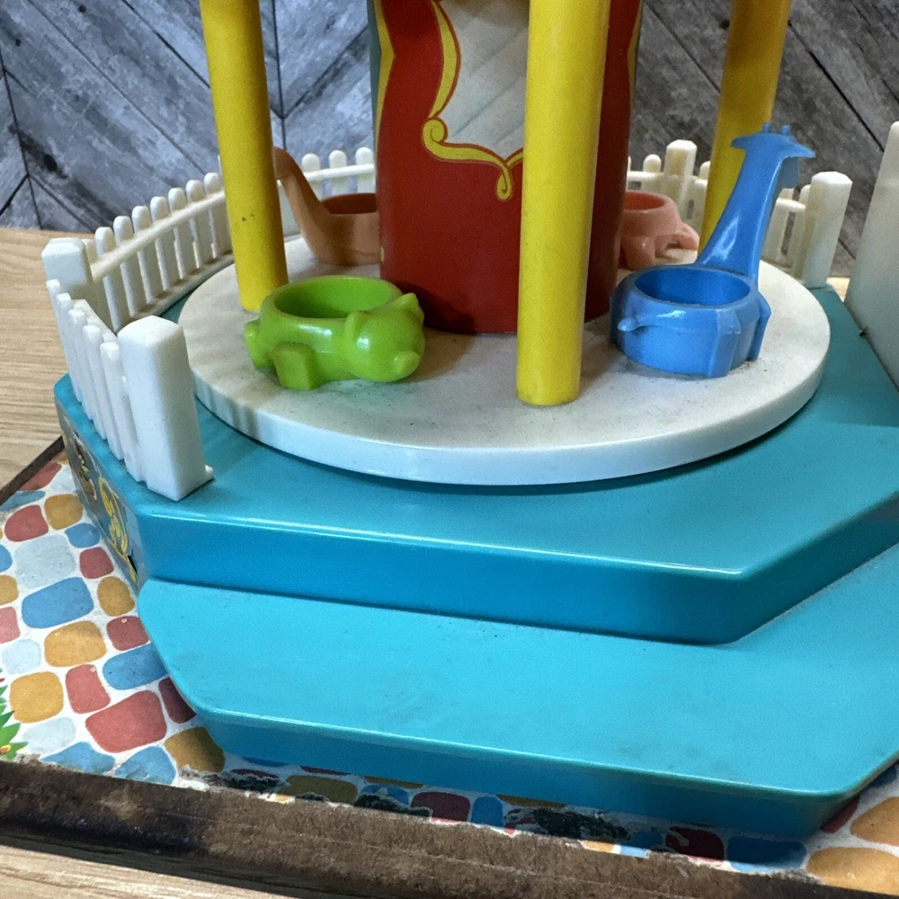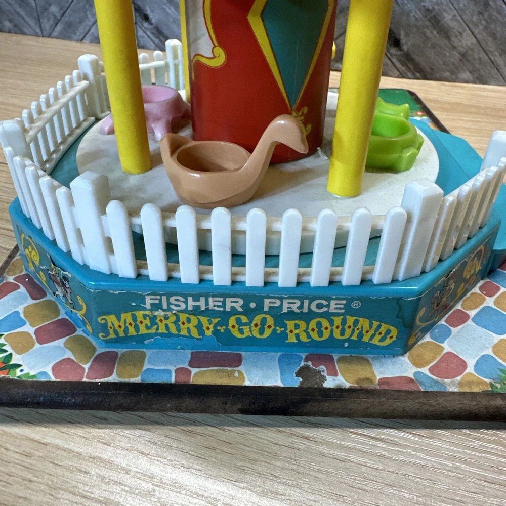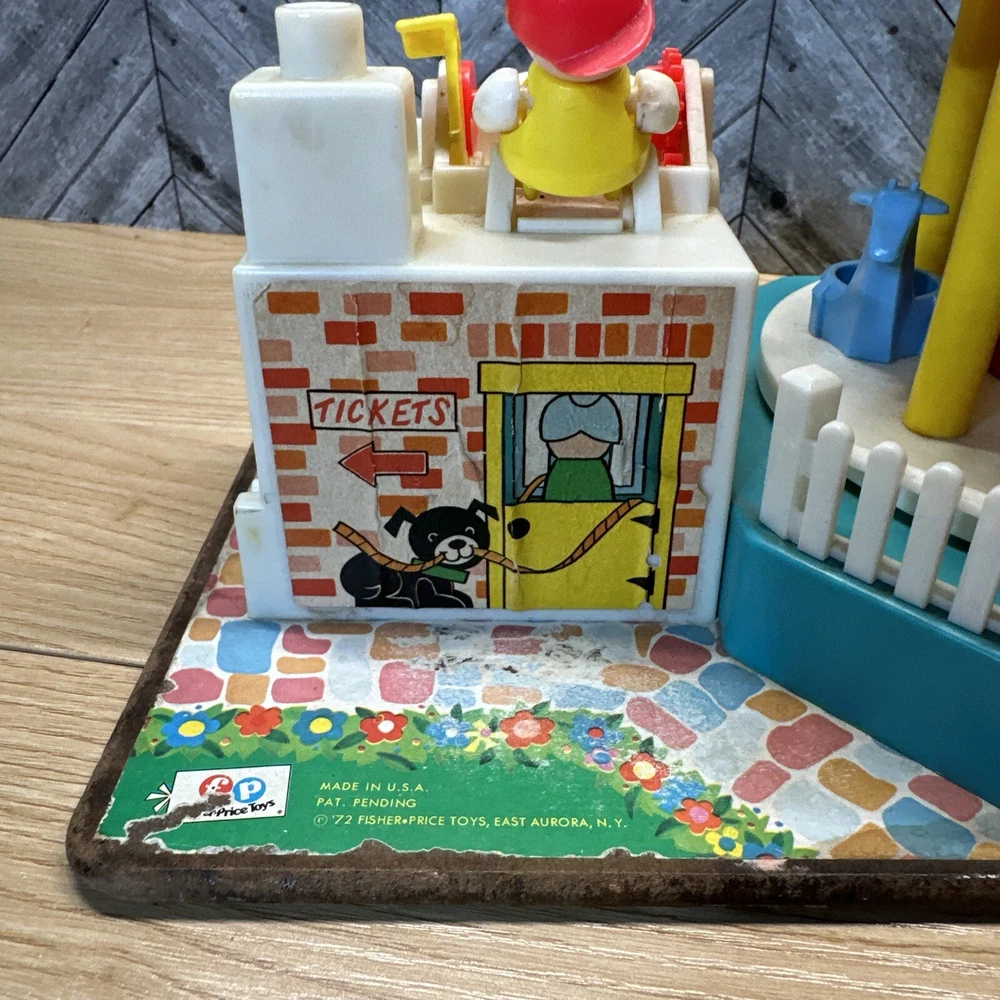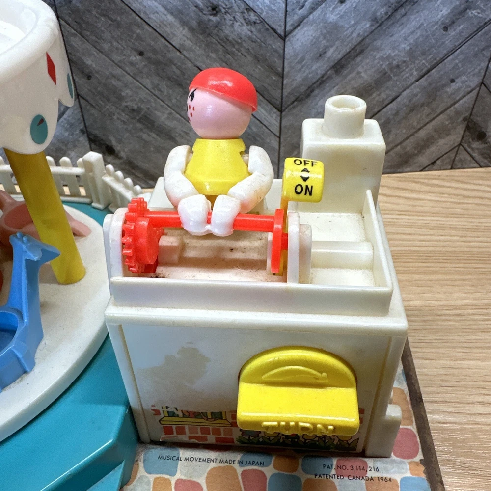 Vintage 1972 Fisher Price Little People Wind Up Musical Merry Go Round Works Device Is Dusty and signs of wear and tear are evident but the wind up and the carousel are in working condition Please see pictures