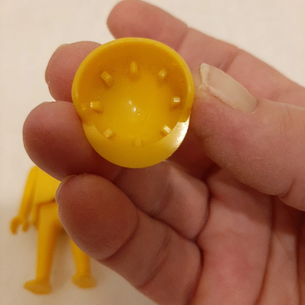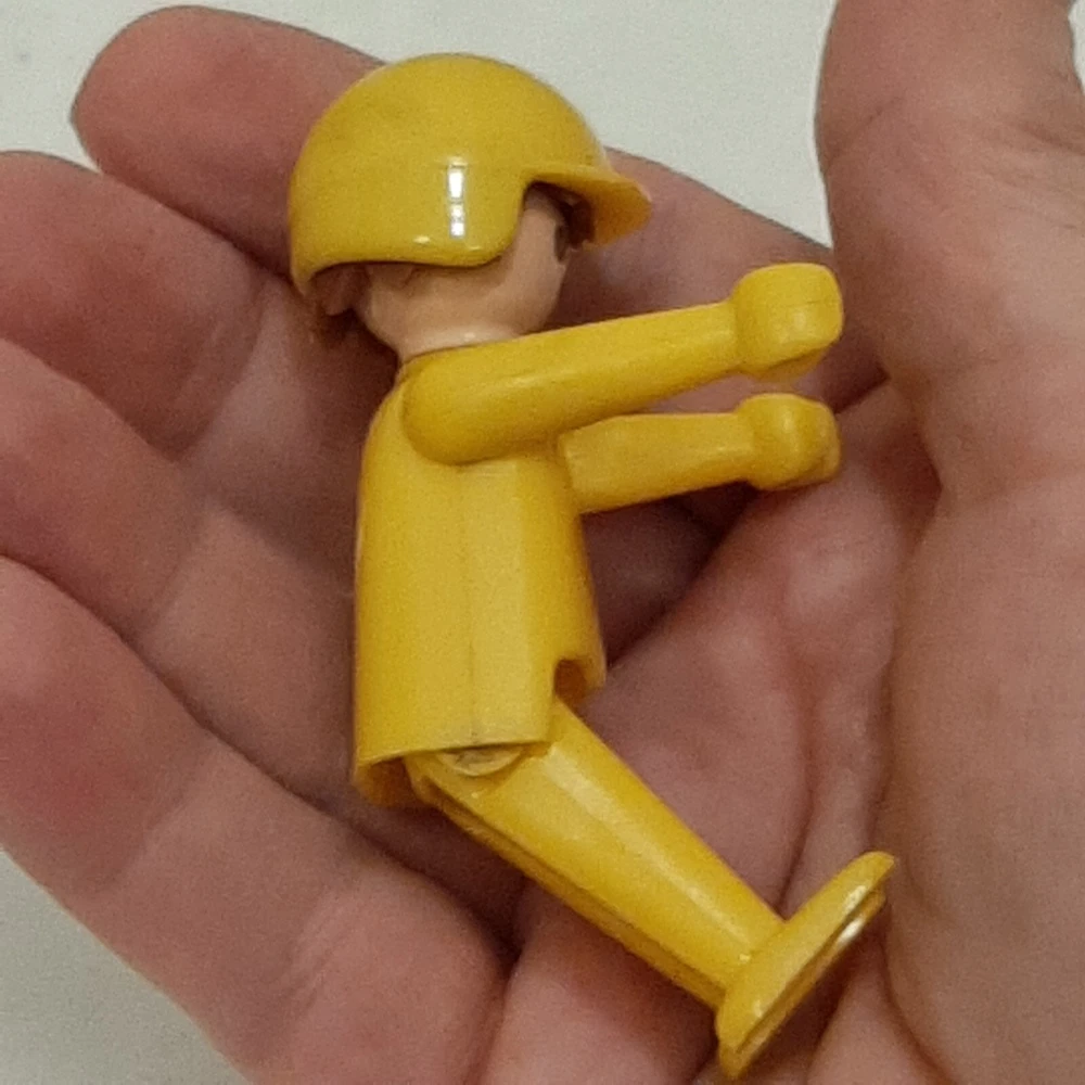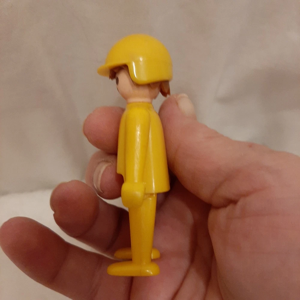 Vintage 1974 Playmobil Geobra Figurine Yellow Body With Hat/Helmet Old School In good pre-owned condition may show signs of wear from use/handling/storage/display. Please view all pics for condition/details/flaws/issues. SOLD AS IS In excellent pre-owned condition may show signs of wear from use/handling/playing/displaying/storage/age please view all photos for details. I found no flaws with this item.