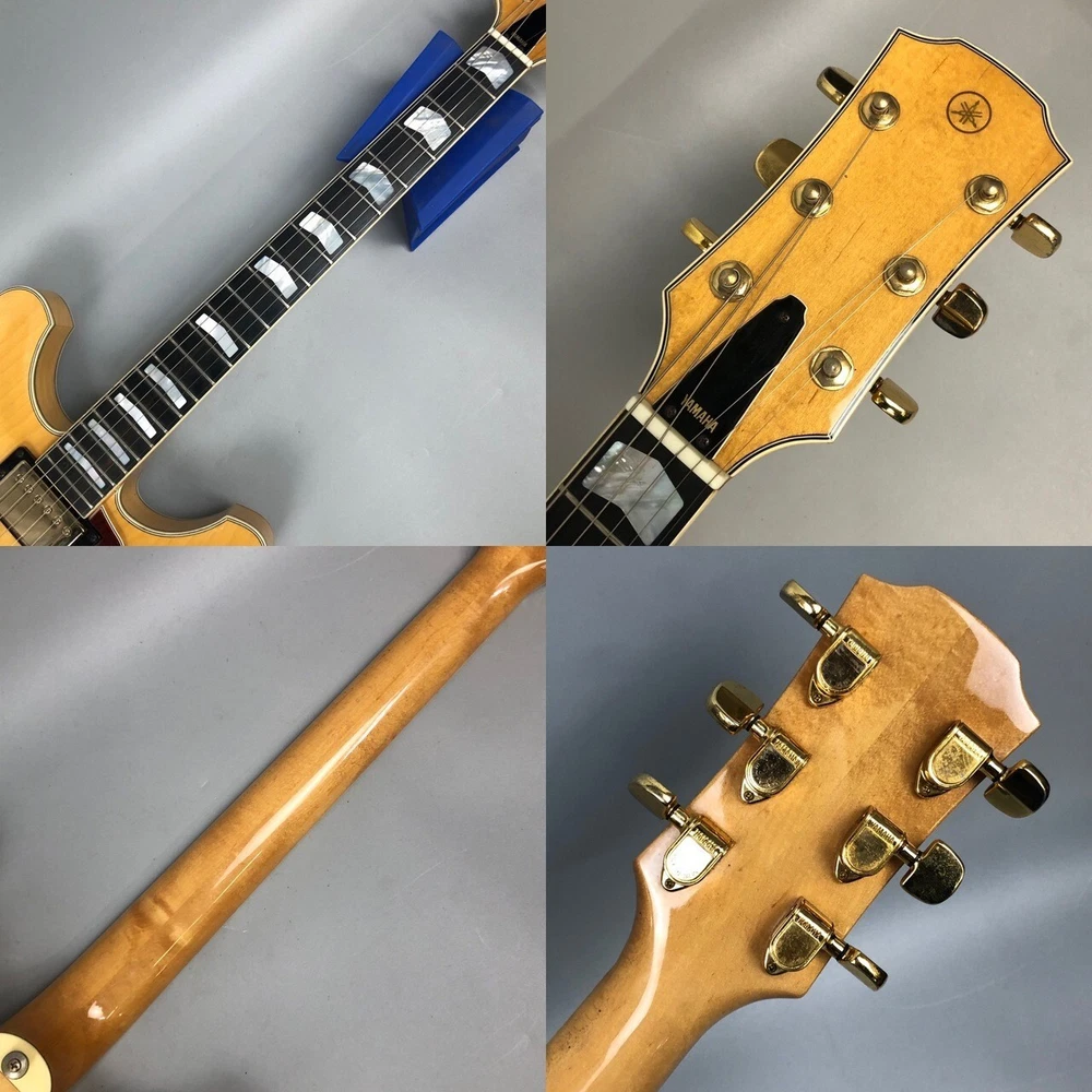 Description YAMAHA SA-90 Manufactured in 1974 YAMAHA's first semi-acoustic model! And it was the top model at the time! A Japanese vintage that is popular both domestically and internationally for its careful construction and high-quality wood materials! It is also known for being used by former Sonic Youth member Jim O'Rourke, and is traded overseas for about 250,000 to 300,000 yen. The number of good condition ones is decreasing, and this model is expected to rise in price in the future, so why not take this opportunity to get one! ! [YAMAHA's SA series is renowned for its good sound] The SA series is a popular series that demonstrates YAMAHA's tradition and technical capabilities, and has many fans. It has been a super long-seller since its introduction in 1967 and continues to be a long-seller to this day. It has a long history, following the introduction of the first SG series and YAMAHA's first electric guitar, the SG-3 (S302), in 1966, the first model in the SA series, the SA-5 (SA-50), was released in 1967. The following year, in 1968, the SA-5 was renamed the SA-50, and the SA-15, SA-30, and other models were added to the lineup, and the SA series was launched in earnest. However, the early SA series was very different from the current SA series, with a full-hollow structure without a center block and a unique body shape, giving it a so-called bizarre guitar feel. The SA-60 and SA-90, which appeared in 1973, were semi-hollow guitars equipped with a center block while retaining the unique body shape of the previous series, and the balancer that was often installed in the previous SA series was eliminated, resulting in a general 2Vol, 2Tone configuration. At that time, Yamaha's models, not only the SA series, had a unique appearance but were quite practical in content, and many of them were intermediate between the unique line up to that point and the general-purpose line that followed. After that, with a model change in 1977, the specifications finally became close to the current configuration, and the SA series since then has adopted a bi-sound system and has continued to change models while incorporating features not found in other companies. This product is a Yamaha SA-90. The body has a unique cutaway shape following the early SA series, and the guitar has 2 humbuckers, a luxurious original swing tailpiece, and a jack plate with the YAMAHA logo printed on it, giving it a sense of Yamaha's attention to detail. The controls are 2Vol, 2Tone, and 3-way selector. The bi-sound system was not yet installed in models from this period, and the guitar is similar to a typical ES-335-type semi-acoustic guitar. The pickup date for this guitar is October 3, 1974, so we determined that it was made in 1974. [Yamaha's unique approach and full semi-acoustic sound] The body is made of birch top and beech sides and back. The neck is made of beautiful bird's eye maple, and the fingerboard is made of black ebony. It has a 22-fret, set neck with a scale of approximately 628 mm. The center block is made of katsura, which gives it a rich airiness that is typical of semi-acoustic guitars, and a cored sound that leaves a lasting sound image. The knobs, bridge, and tailpiece are also sprinkled with original Yamaha elements, and the attention to detail is evident. The position marks are decorated with pearl block inlays, which, combined with the dark ebony, give it a luxurious look. The pickup is a covered humbucker. The mellow sound of the front pickup with a sense of air and the bright sound of the rear pickup are well balanced, making it a sound that can be used in a variety of genres. The control is a 2-volume, 2-tone, 3-way toggle switch. After about 50 years, it has a very attractive sound. The neck condition is almost flat. There is a crack in the clear layer near the left cutaway. There are no other noticeable scratches and it is in good condition. The string height is 12F 6th string approx. 2.1mm, 1st string approx. 1.8mm. The strings used are .010-.046. The truss rod has plenty of room to tighten and loosen. About 70% of the frets remain, and there are no low spots. If you pick hard, the 6th and 5th strings will vibrate slightly, but this should not cause any problems with normal use. Includes a hard case. [SPEC] Body material: birch + beech, katsura center block Neck material: maple Neck shape: C Neck curvature: none Fingerboard material: ebony (22F) String height: treble-bass: 1.8-2.1 Number of frets remaining: 7 Inlay: block Nut (width): approx. 42mm Pegs: original Scale: approx. 628mm Bridge: original String gauge: .010-.046 Pickguard: tortoiseshell Pickups: original covered humbucking Switch: 3-way toggle switch Controls: 2vol 2tone Rod clearance: I tightened it a little when adjusting it, but there is clearance to tighten and loosen it Weight: 3.88 Accessories: hard case Serial number: 30902 Shipping Shipping by Fedex or EMS (international express mail service, with Tracking and Insurance, handling cost). Fedex takes 1 week, EMS takes 1-2 weeks. We will ship your item within 5 business days with carefully packed. Returns Money back guarantee within 30 days. We offer 30 days money back guarantee for defective products. The buyer must pay for returning it back to us. When there were defects in a item, please contact us. About Us If you have any problem, please contact us. Your satisfaction is important to us. We have results that I sold of tens of thousands of by Internet sale. We have pride ourselves in the Quality of items we offer. All our items has been checked by technician. As every seller dealing with pre-owned branded items in Japan we have as well license from local government to offer services of this kind. We are officially registered as legal business and we have to comply with all rules and regulations including tax requirements from the Japanese government. International Buyers - Please Note: Import duties, taxes and charges are not included in the item price or shipping charg
