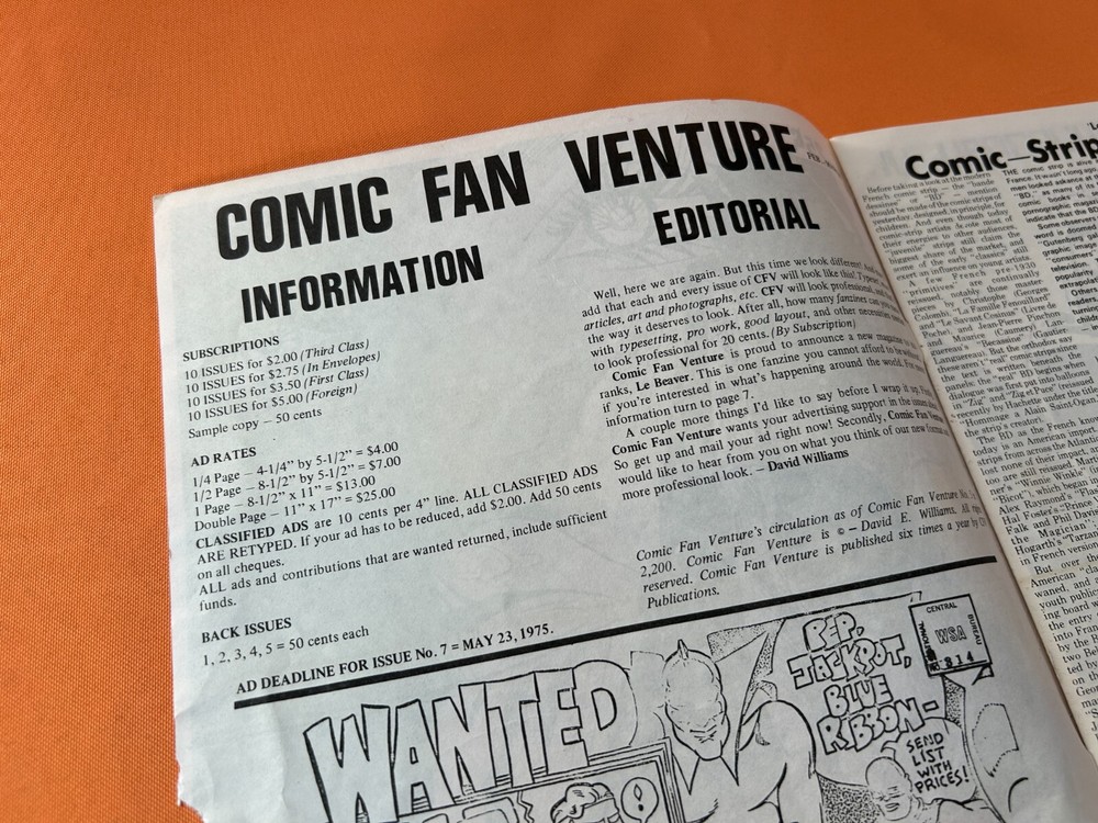 This auction is for a copy of a vintage Canadian fan zine, COMIC FAN VENTURE #6 (1975)! The issue features a recap of a Vancouver Sci-Fi convention with Vaughn Bode photos. Issue also features fan art, reviews, and sale ads. This issue is in POOR condition. Shipping in the US will be $9 for Flat Rate Priority Mail, or $5 for Media Mail. Comic will ship bagged and boarded. Payment is expected within 3 days of the end of the auction. We currently ship once a week, usually on Thursdays. Handling time is currently set at 5 days to reflect this, but depending on when auctions close and when payment is made we often ship much faster. Thanks in advance for your patience! This item is part of the inventory at Now Or Never Comics in San Diego, CA. Buyers are welcome to pick items up in store to save on shipping. We are open from 11am to 7pm, Monday through Sunday. Feel free to contact us if you have any questions, and we'll get back to you as quickly as we can. Be sure to check out our other auctions for more comic books, toys, video games, posters, signed items, convention exclusives, out of print items, and more! BOX #UT16