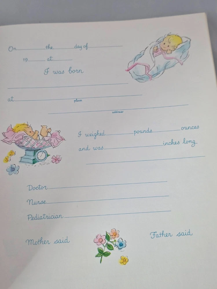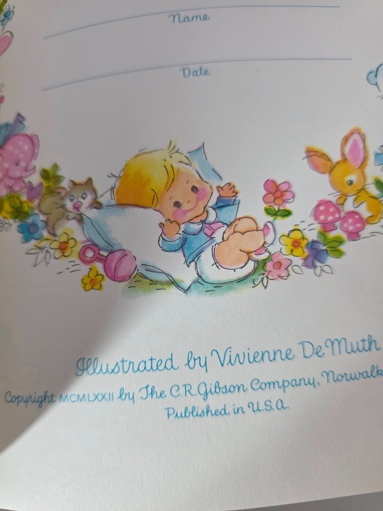 Theme:Birth to AdulthoodIllustrator:Vivienne De MuthGender:UnisexColor:MulticolorYear Published:1977Brand:C.R. GibsonCountry of Origin:United StatesNumber of Pages:60Character Family:Vintage IllustrationsCity of Publication:Norwalk, CT