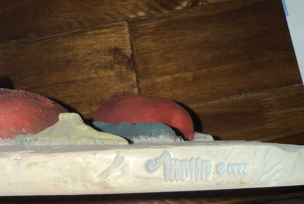 The Austin Sculpture Vintage Bas-Relief Apple is a unique and charming piece of wall decor created by artist S Romo in 1977. Measuring 10 inches in height and 7.5 inches in width, this signed plaster sculpture features a multi-color design depicting a fruit theme. Originating from Mexico, this original vintage piece of hanging wall decor adds a touch of artistry and nostalgia to any space. Perfect for those who appreciate classic aesthetics and unique handmade art.