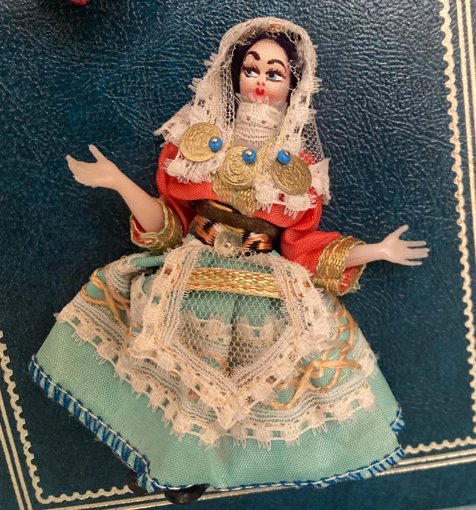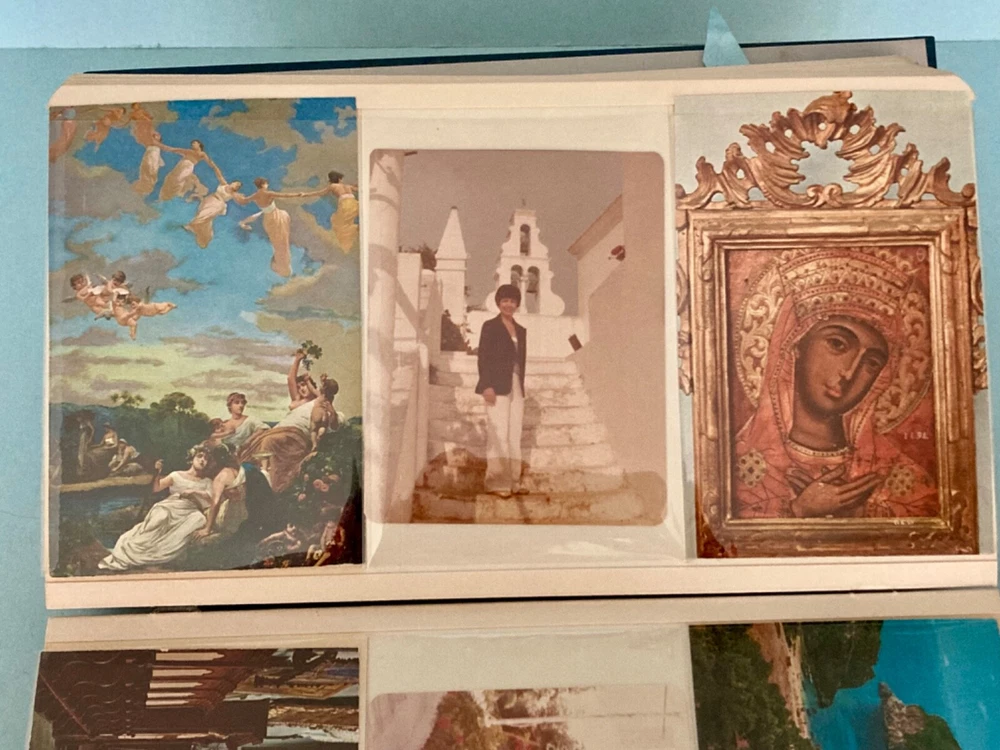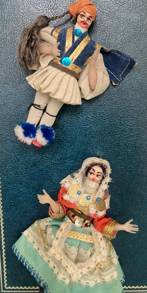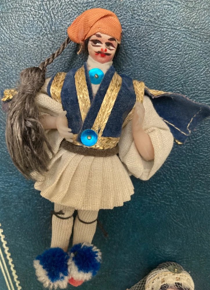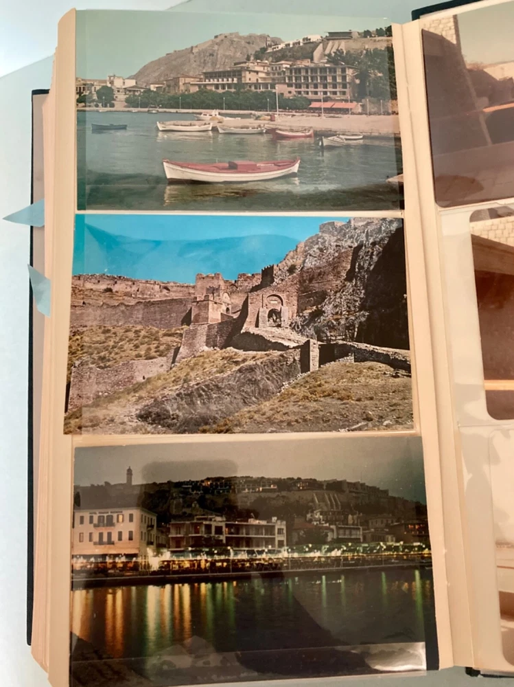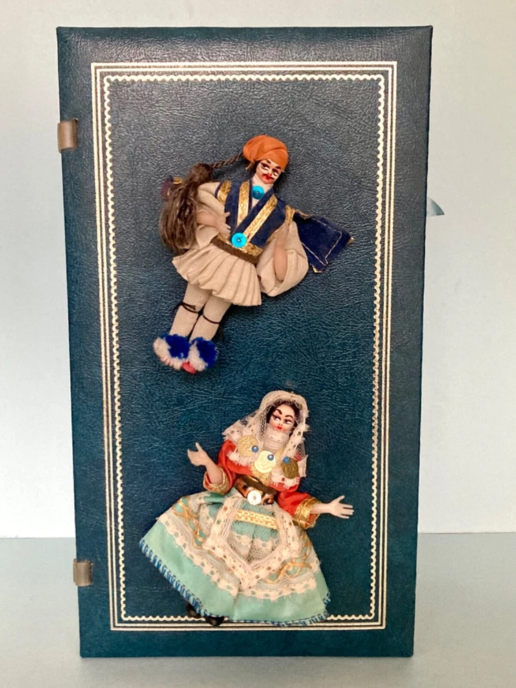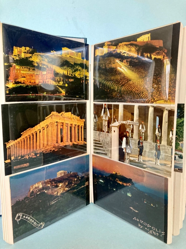 This vintage, 1978, photo album features photographs and over 60, unused post cards, capturing the essence of a family vacation in Greece. The album cover is adorned with Greek dolls, dressed in traditional clothing. It showcases the beauty of famous places, people, and cultures, offering a glimpse into the history and domestic life of the time period. The album is a one-of-a-kind, perfect for collectors. It offers a perspective on family and travel, featuring vibrant color images of cities and towns such as Greece, Corfu and Istanbul. Can you believe the TWA booklet ~ complete with dinner menu, cocktail list and Duty free shop? Wow!! Whether you are an avid traveler, fan of history or simply appreciate the beauty of family, vacation photographs, this vintage album is a must-have addition to your collection. The wonderful, vintage postcards are unused. What a fantastic collection! Take out the personal, family photos, if you wish and replace with your own. Great gift for the World Traveler. Please see photos for measurements and condition.