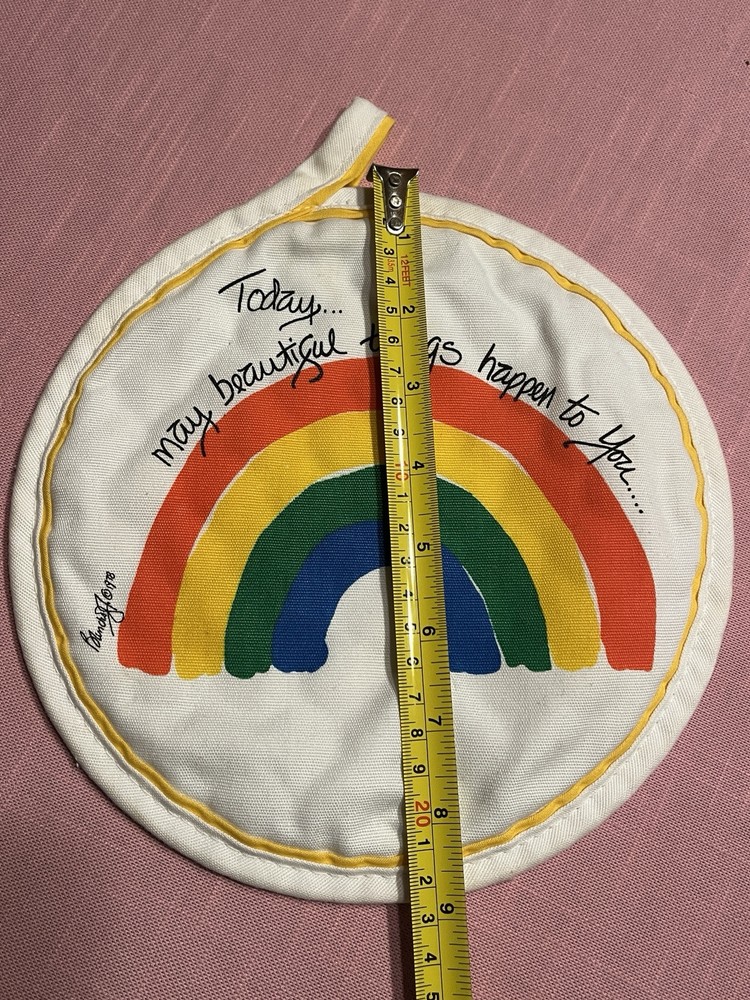 Character Family:RainbowTheme:RainbowPattern:QuiltedCharacter:RainbowCare Instructions:Machine Washable up to 100°FColor:MulticolorCountry/Region of Manufacture:United StatesType:Oven MittStyle:Vintage/RetroDepartment:AdultsMaterial:CottonOccasion:All OccasionBrand:BancroftNumber of Items in Set:1