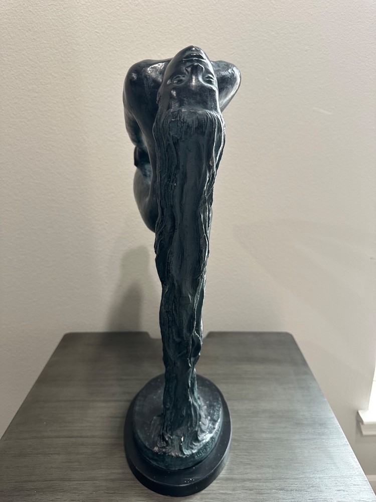 Austin Productions Sculpture “Sultry Awakening” 1979 by Klara Sever (signed) VTG. Small chip (white) on base, can be seen in the pictures. Includes the original sculpture description card from Austin Productions. 16" tall x 11" wide x 5" deep.