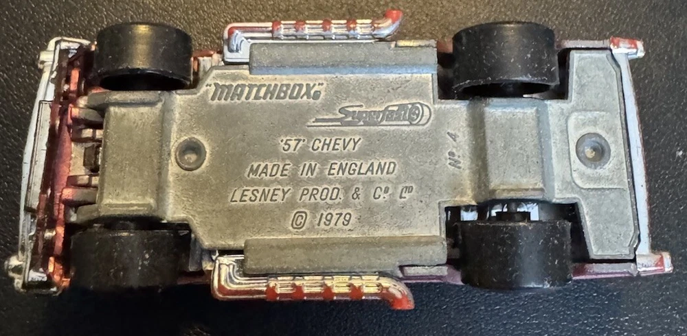Year of Manufacture:1979Scale:1:64Vehicle Type:CarColor:PinkCustom Bundle:NoSeries:Matchbox SuperfastBrand:MatchboxFeatures:Limited Edition, Special EditionModel:'57 ChevyTheme:Classic CarVehicle Make:ChevroletMaterial:DiecastGender:Boys & GirlsCountry/Region of Manufacture:United KingdomVehicle Year:1957Modified Item:NoCharacter Family:Matchbox
