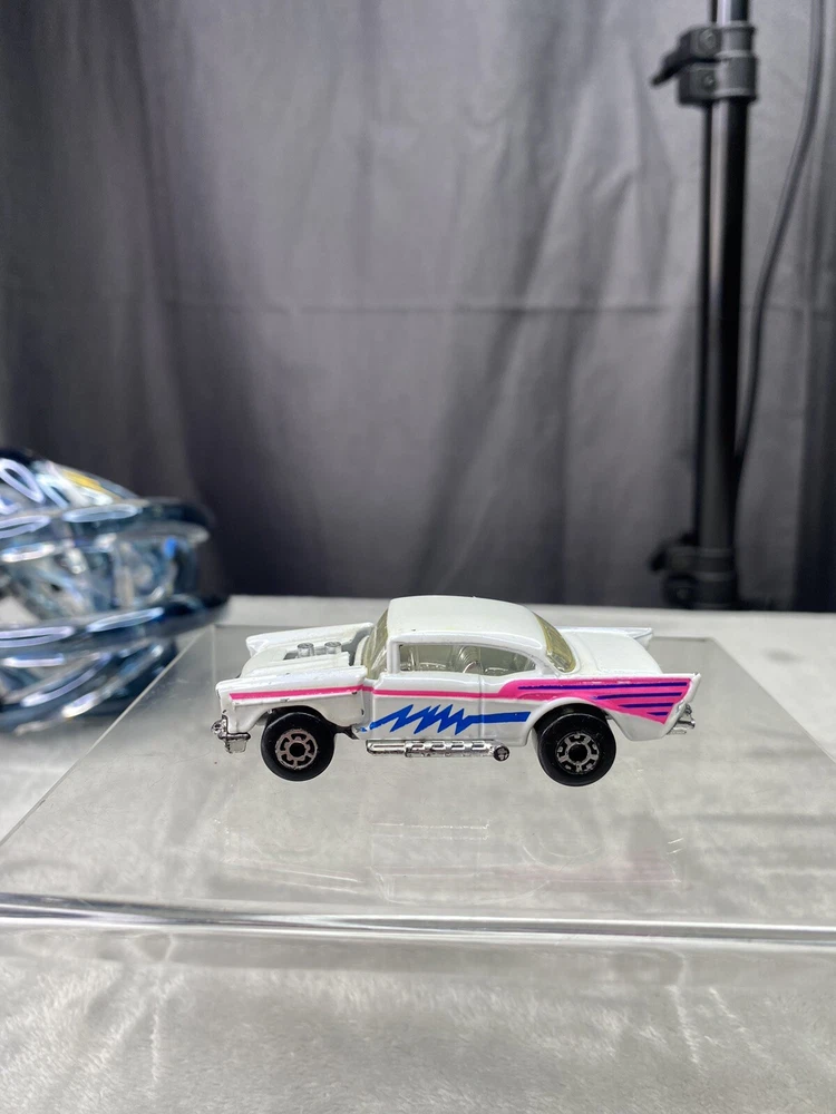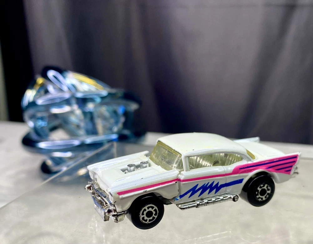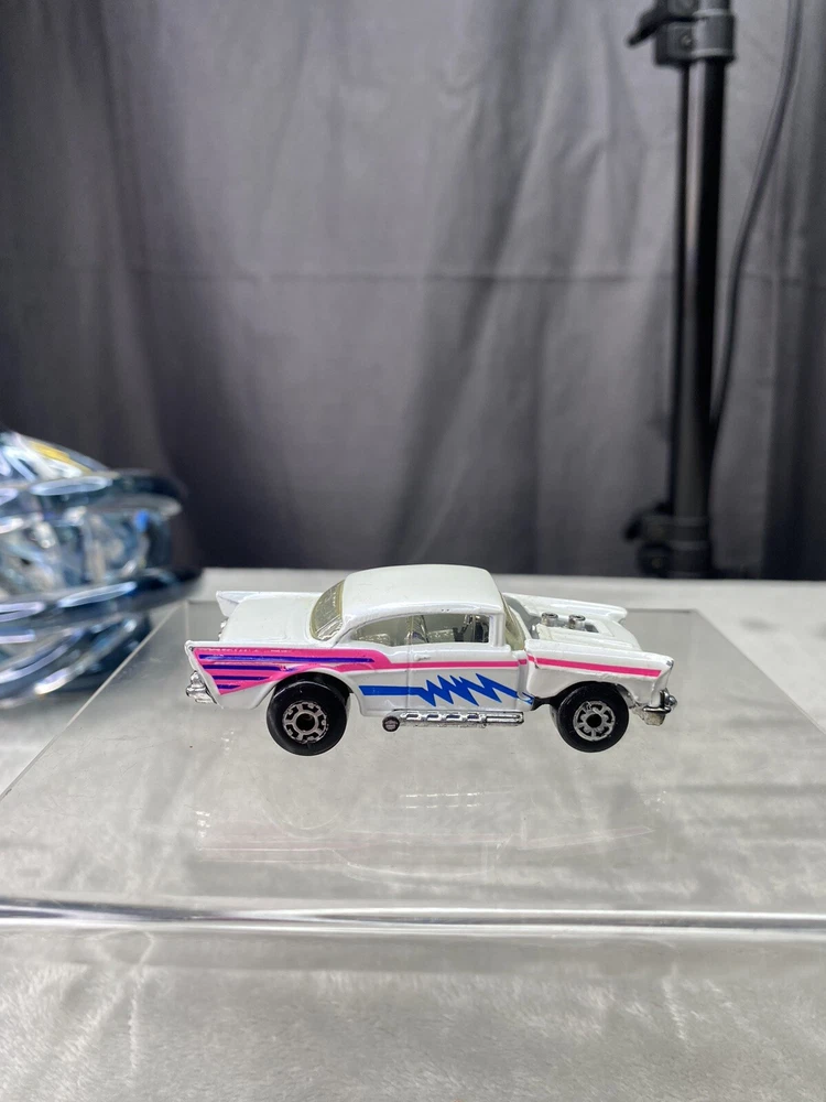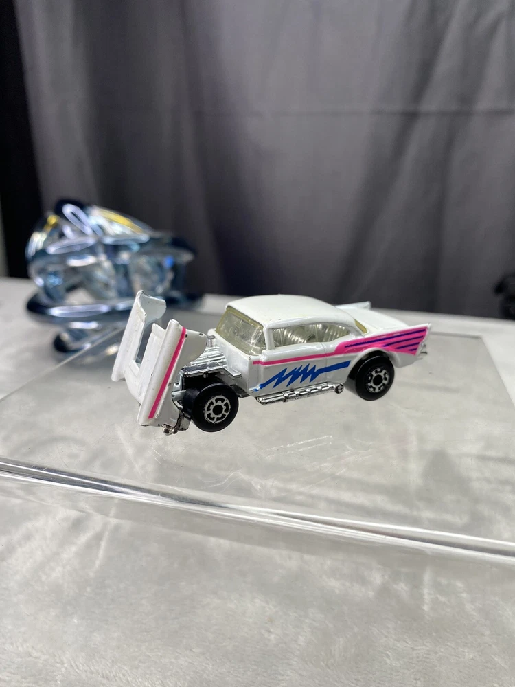 Vintage 1979 Matchbox Superfast '57 Chevy - White With Pink & Blue. Condition is Used. Shipped with USPS Ground Advantage.