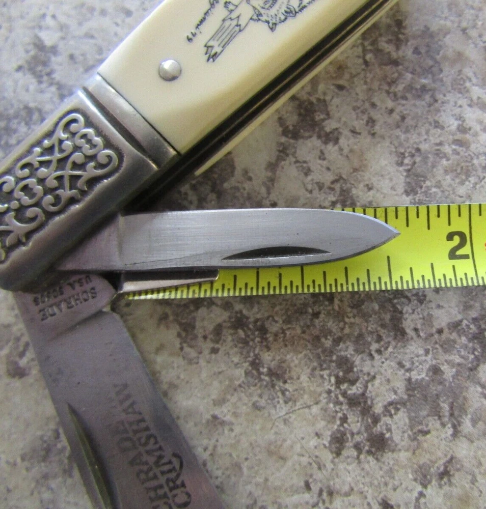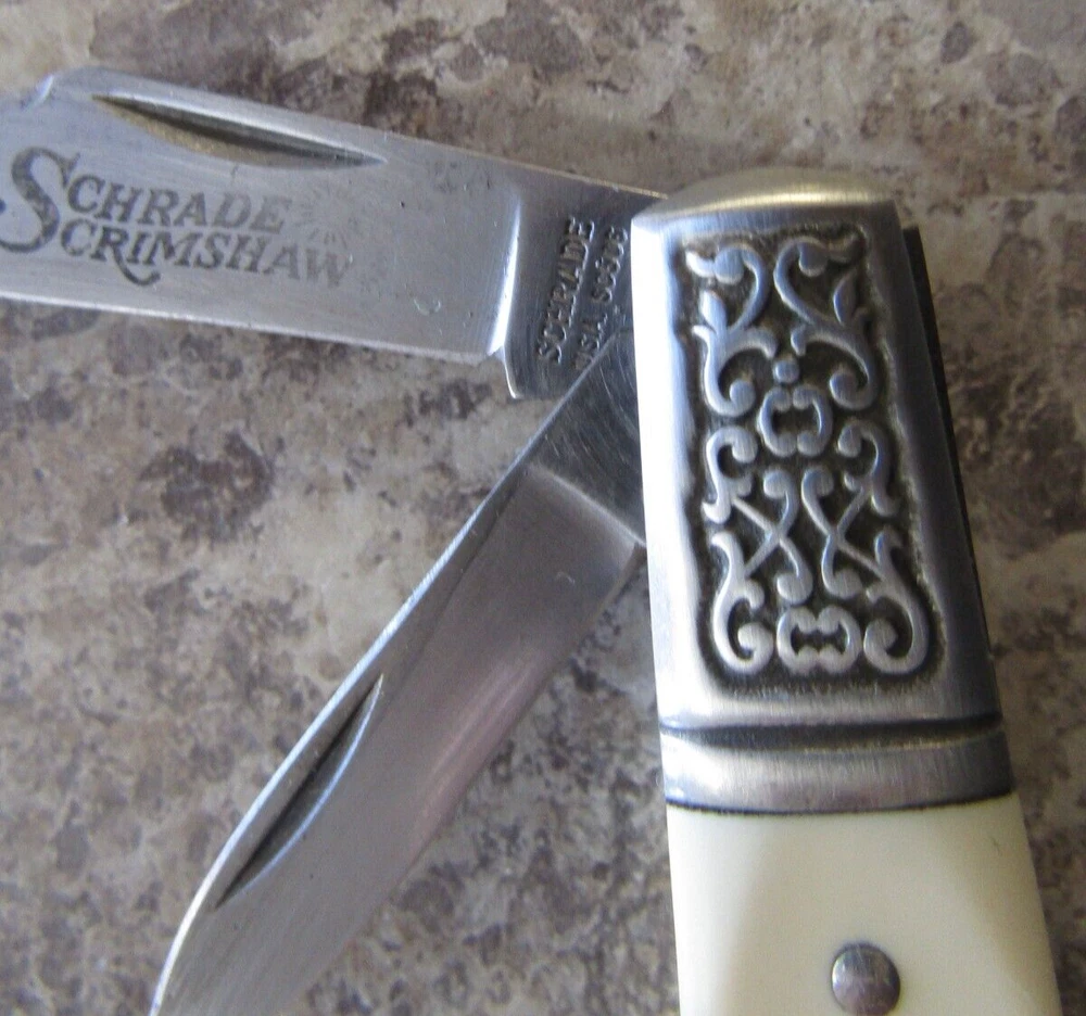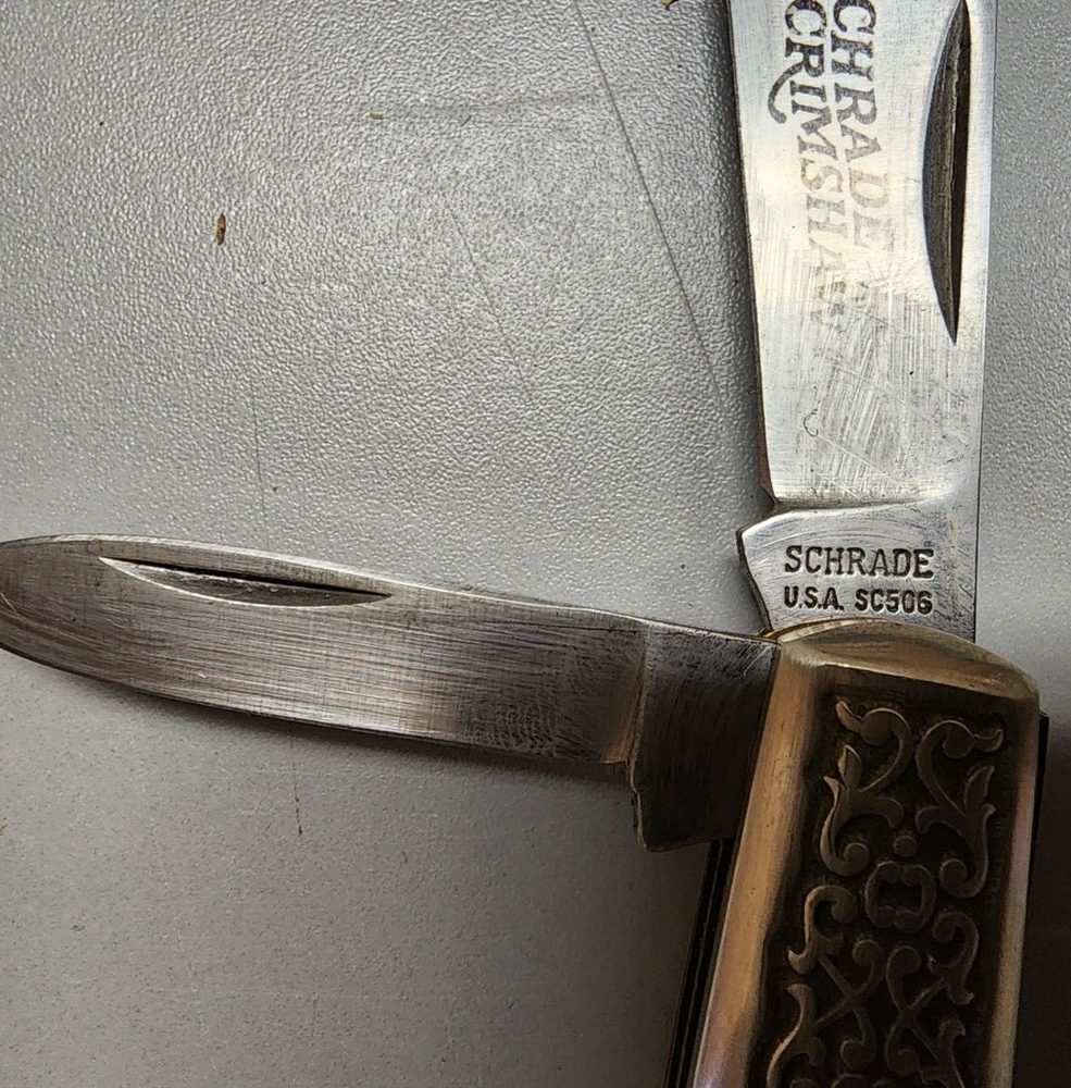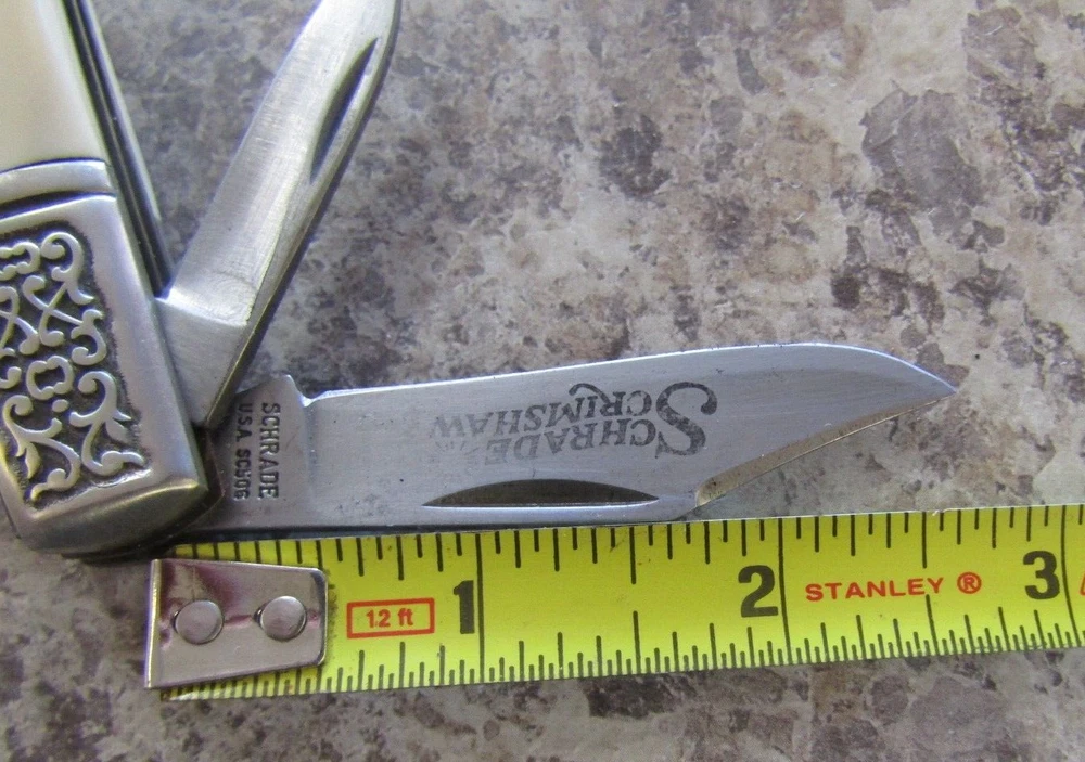 Number of Blades:2Model:SC506Brand:Schrade USACountry of Manufacture:United StatesHandle Material:DELRINType:PocketknifeBlade Type:Clip Point, PenCountry/Region of Manufacture:United StatesColor:CREAMOpening Mechanism:Manual