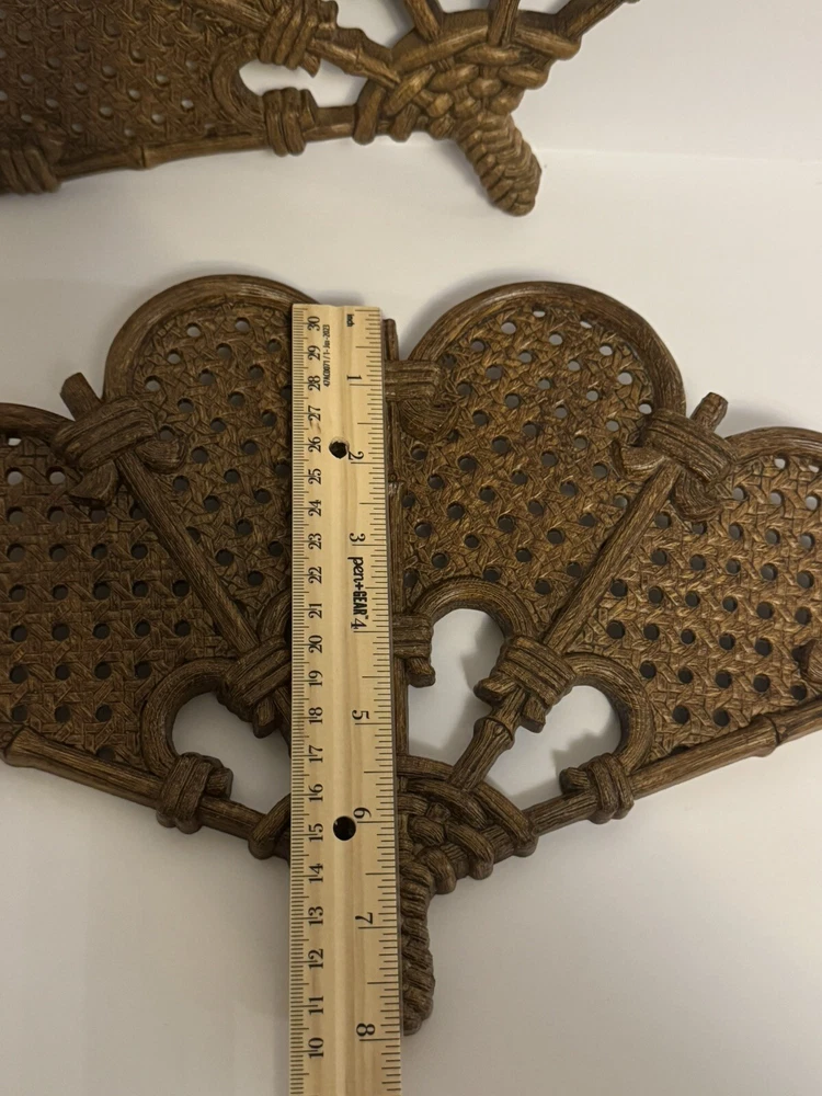 Add a touch of vintage charm to your home decor with this set of two Burwood Prod Co. wall plaques. The brown faux wicker fan shape plaques are perfect for any room in your home. They are made of plastic and have a matte finish.