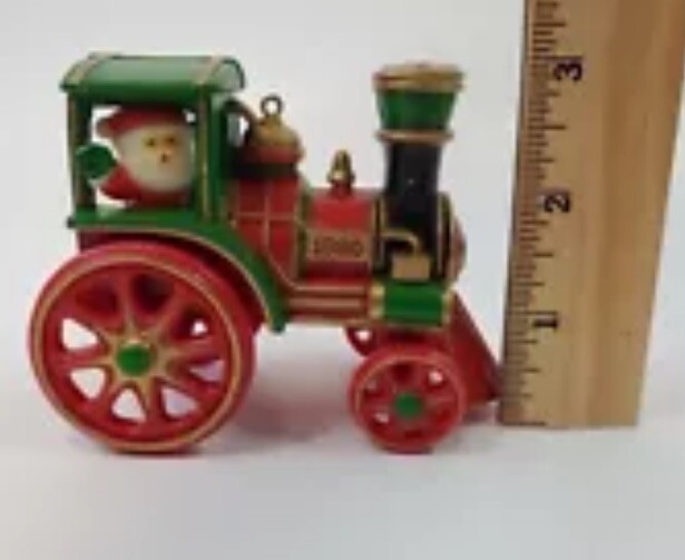 This vintage Hallmark Christmas ornament features Santa Claus on a train, titled "Santa's Travels". Made in Hong Kong in the 1980s, this medium-sized ornament is perfect for any collector or holiday enthusiast. The ornament is made of plastic and weighs 2.6 ounces, with dimensions of 2 inches in length, 3 inches in height, and 4 inches in width. The colorful and decorative ornament is an original and licensed reproduction, with a train shape and a Santa Claus character. It comes as a set including one ornament, and is perfect for the Christmas occasion. Add this unique piece to your collection of ornaments and bring joy to your home during the holiday season.
