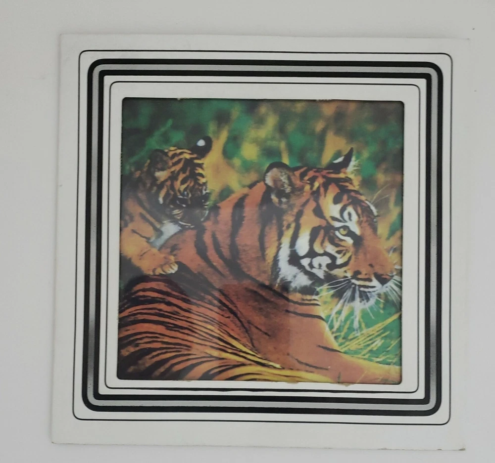 Vintage 1980's Carnival Fair Game Prize Glass Tile -Bengal Tigers RARE π