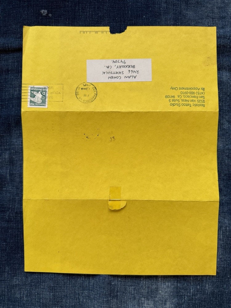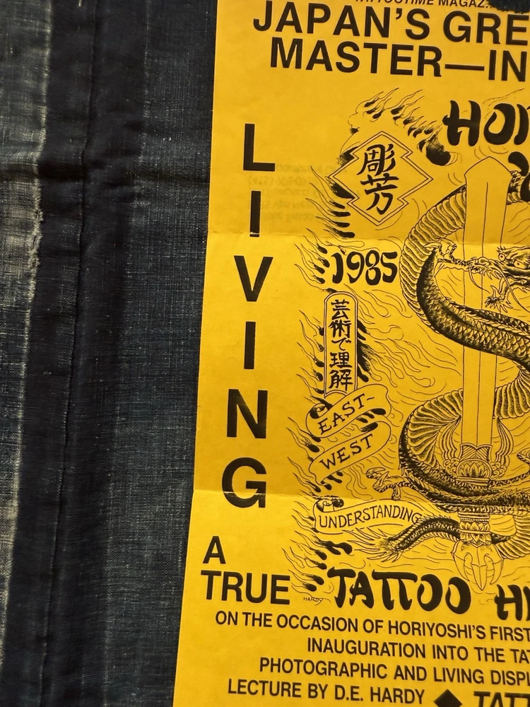 Neat and wonderful, vintage 1980s Hori Yoshi tattoo artist show event, promotional letter/flier. Dated March 13th, 1985. It was sent from Realistic Tattoo Studio, San Francisco. Cool, imagery on the front flier. This was obtained from a local, large collectors estate. Based on my research, I haven’t seen any of these out there. Offering free USPS Ground Advantage shipping! When unfolded, the flier measures 11” inches long by 8” 1/2 inches wide. When shut, it measures 8” 1/2 by 3” 7/8 inches wide. It’s in great, condition with no stains,holes or writing. The main flaw, is the paper tearing/rip on the top of the flier. This is due to being opened. Please note, there’s some creases on the back, front, right corner.Also, there’s some stamp residue on the back middle of the flier. The original tape with the ripped paper, is still attached. Offering as is/as found. A must have for unusual, tattoo history ephemera collectors and enthusiasts. Thanks for your consideration!