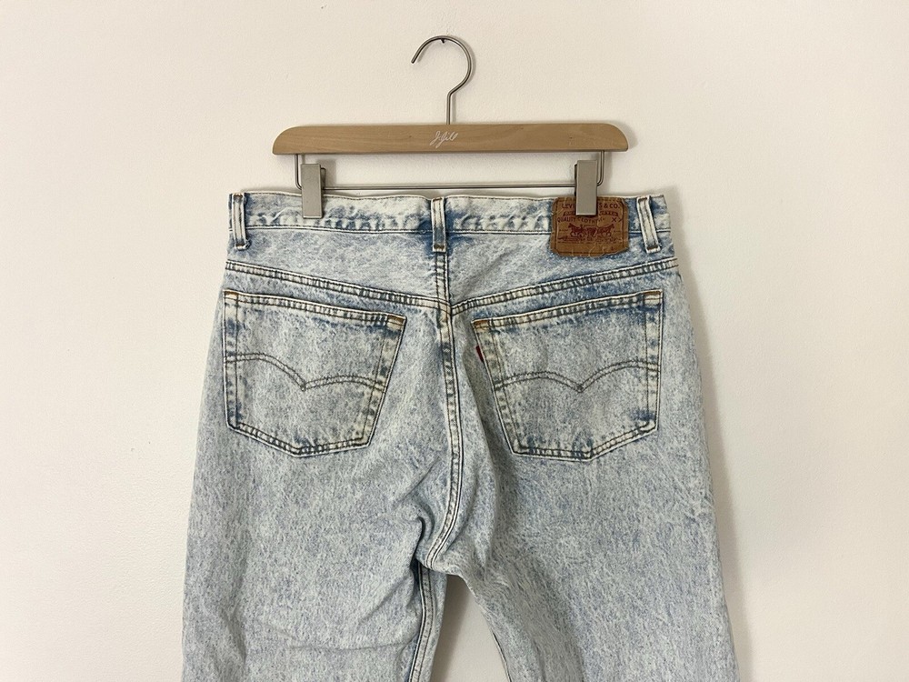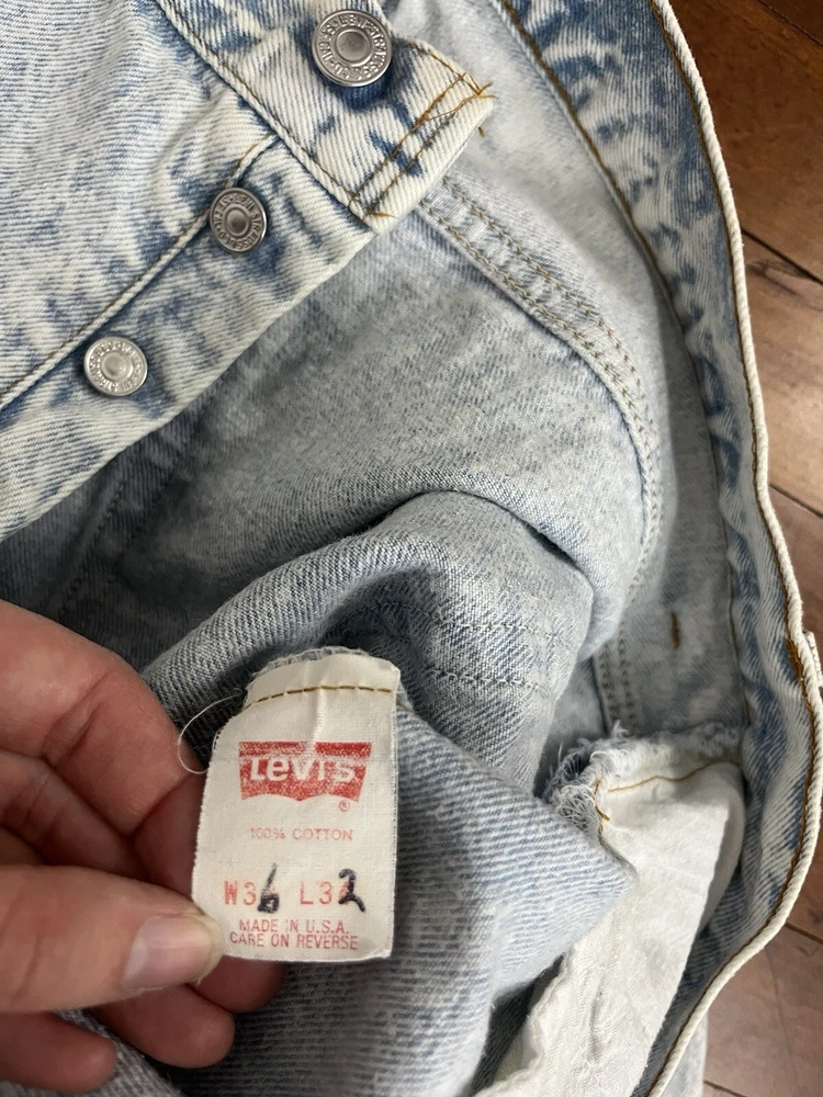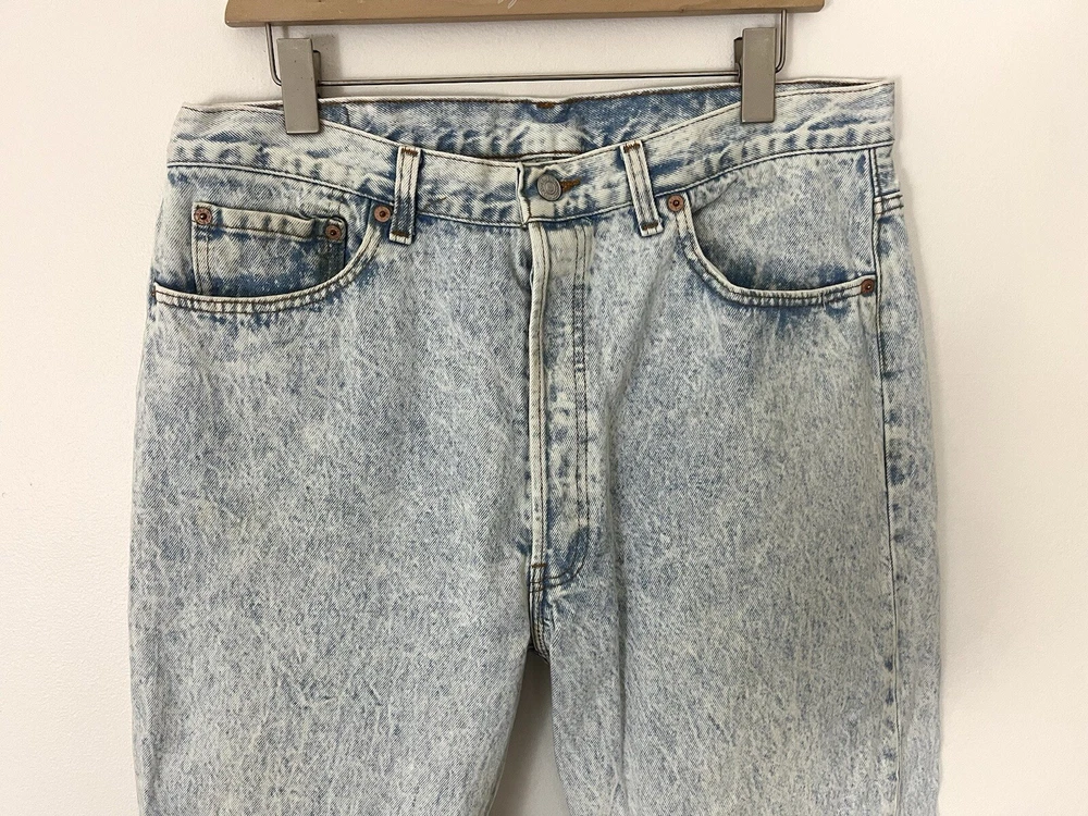 Color: Blue Product Line: Levi'S 501 Series Vintage: Yes Type: Jeans Theme: USA, 80s Fit: Regular Style: Tapered Size Type: Regular Fabric Wash: Acid Wash Fabric Type: Denim Country/Region of Manufacture: United States Inseam: 32 in Material: Cotton Department: Men Closure: Button Size: 35 Features: Pockets, Button Fly Waist Size: 35 in Model: Levi's 501 Brand: Levi's