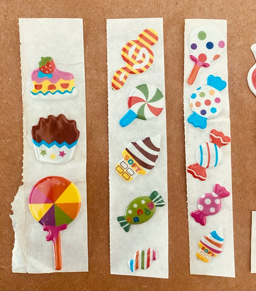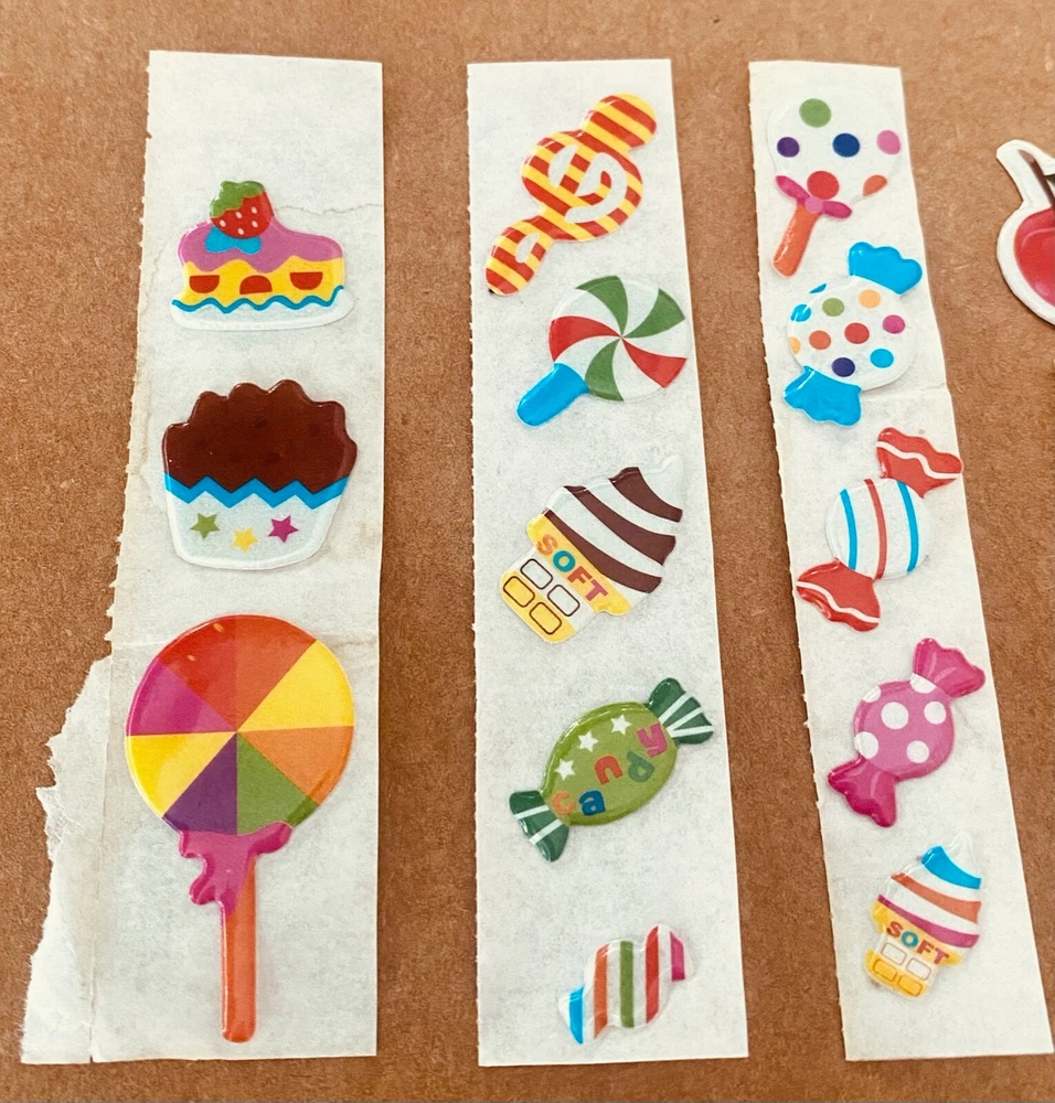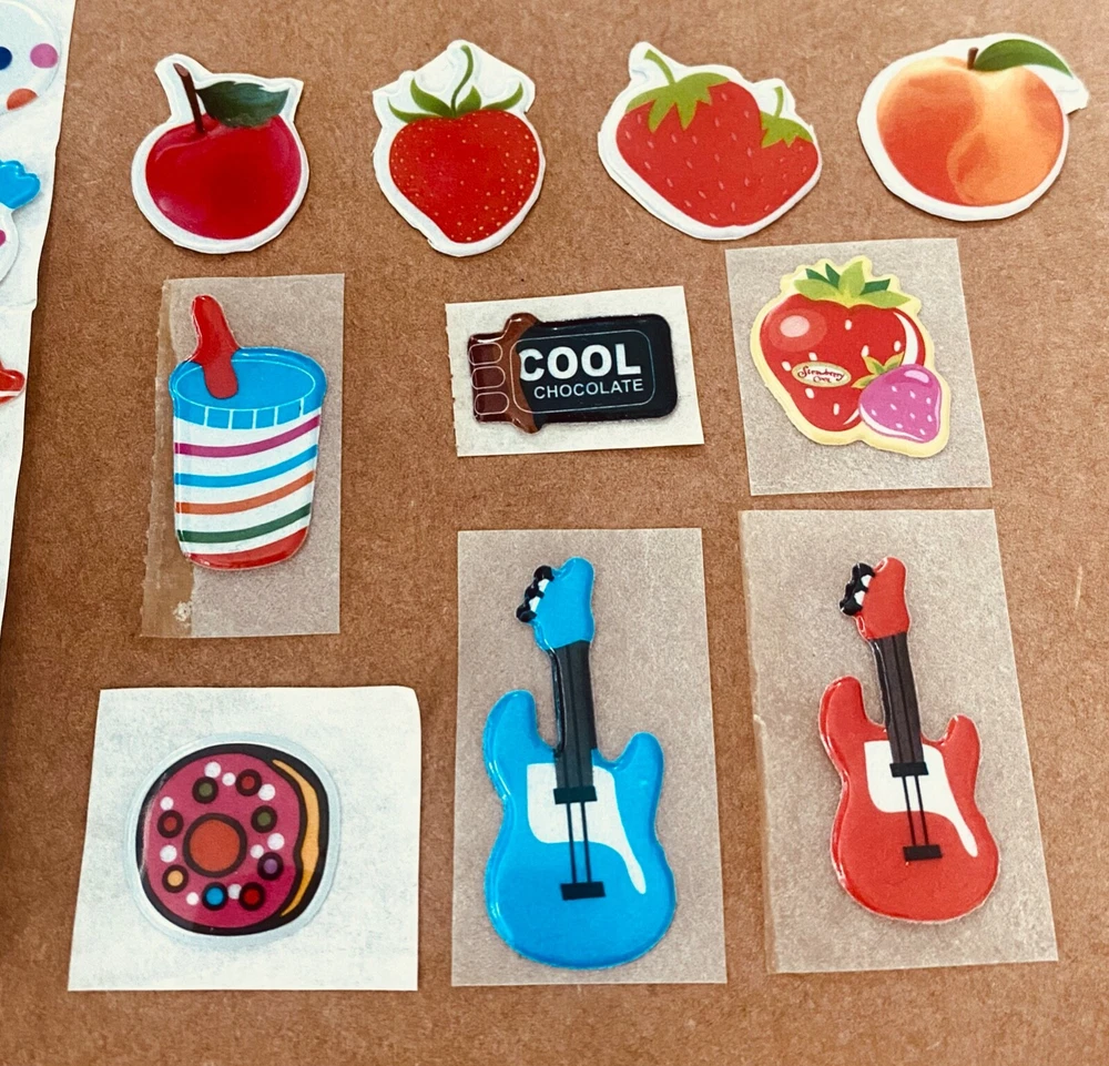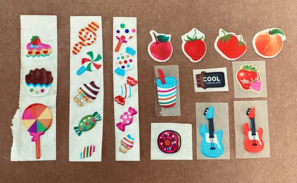Vintage 1980s Puffy Scratch N Sniff Candy Fruit Guitar Stickers Vinyl Stick-On