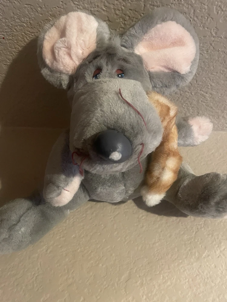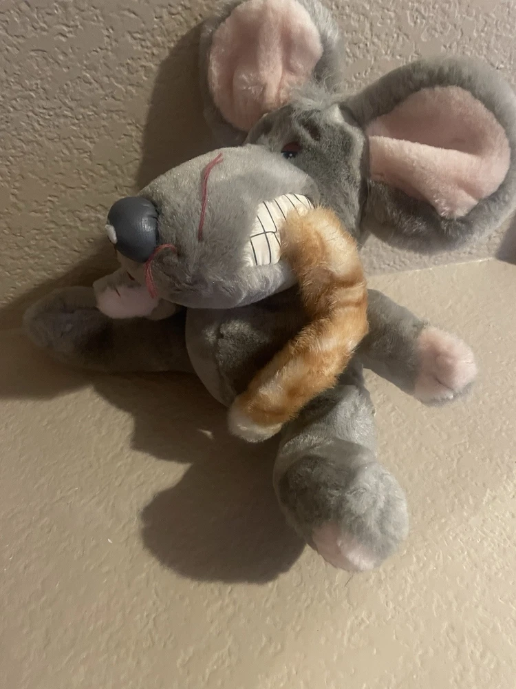This vintage 1980's Russ Berrie Sweet Revenge plush mouse rat is a rare find! Measuring at 14 inches in size, it is perfect for any collector or enthusiast. The character family is Sweet Revenge Russ Berrie, and it is made of unknown materials. This item is in great condition and is sure to make a unique addition to any collection.