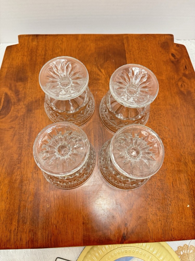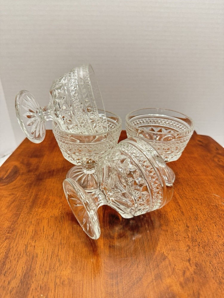 Original/Licensed Reproduction:OriginalVintage:YesProduction Style:Crackle GlassAntique:YesNumber of Compartments:4Number of Items in Set:4Model:BowlMaterial:GlassCountry/Region of Manufacture:United StatesColor:ClearProduct Line:Old WilliamsburgType:Sundae Desert BowlTime Period Manufactured:1980-1989Style:ContemporaryYear Manufactured:1980Packaging:BoxedShape:RoundBrand:Unmarked