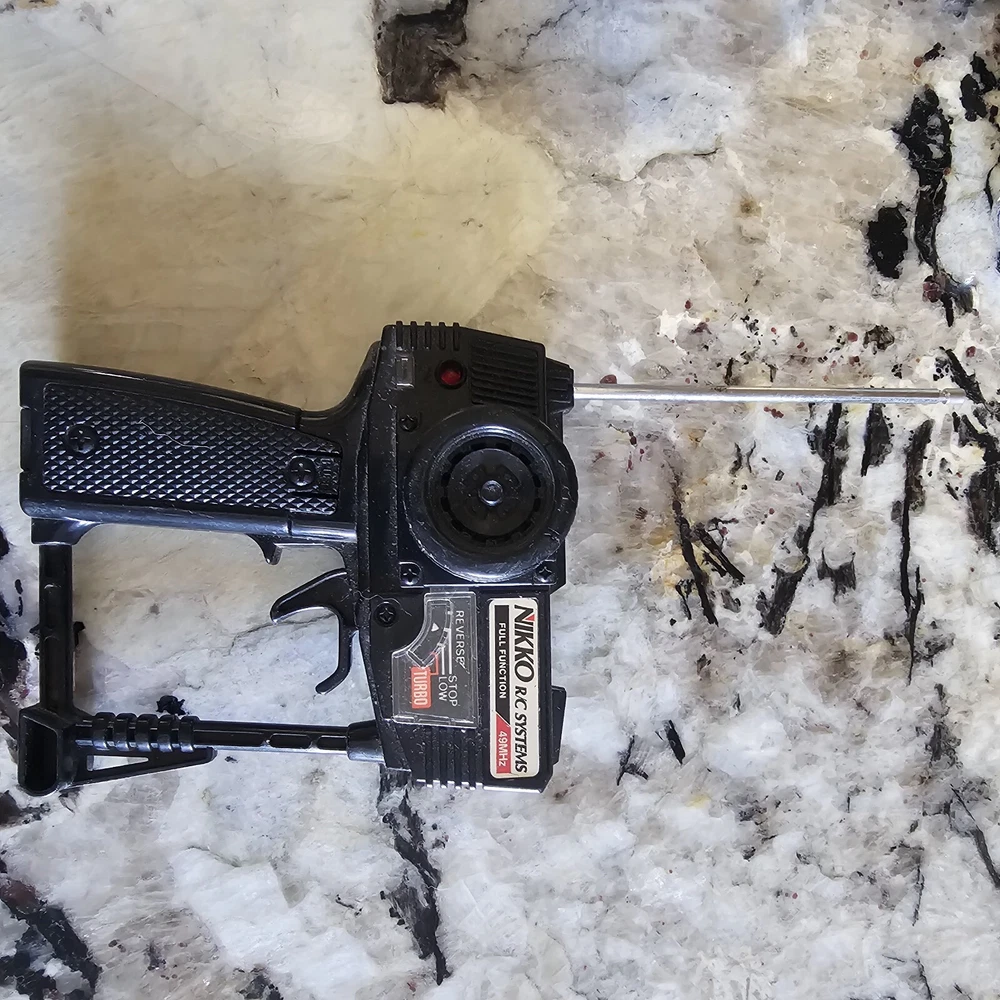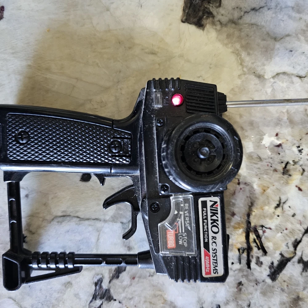 This is a vintage Nikko RC truck from 1980's, model LOBO #12 . The truck is black in color and features a brushed motor. It is a 4WD electric RC car that comes with a remote control. Please note that batteries are not included with this product. Remote turns on but not tested. Not in original box. Sold as is