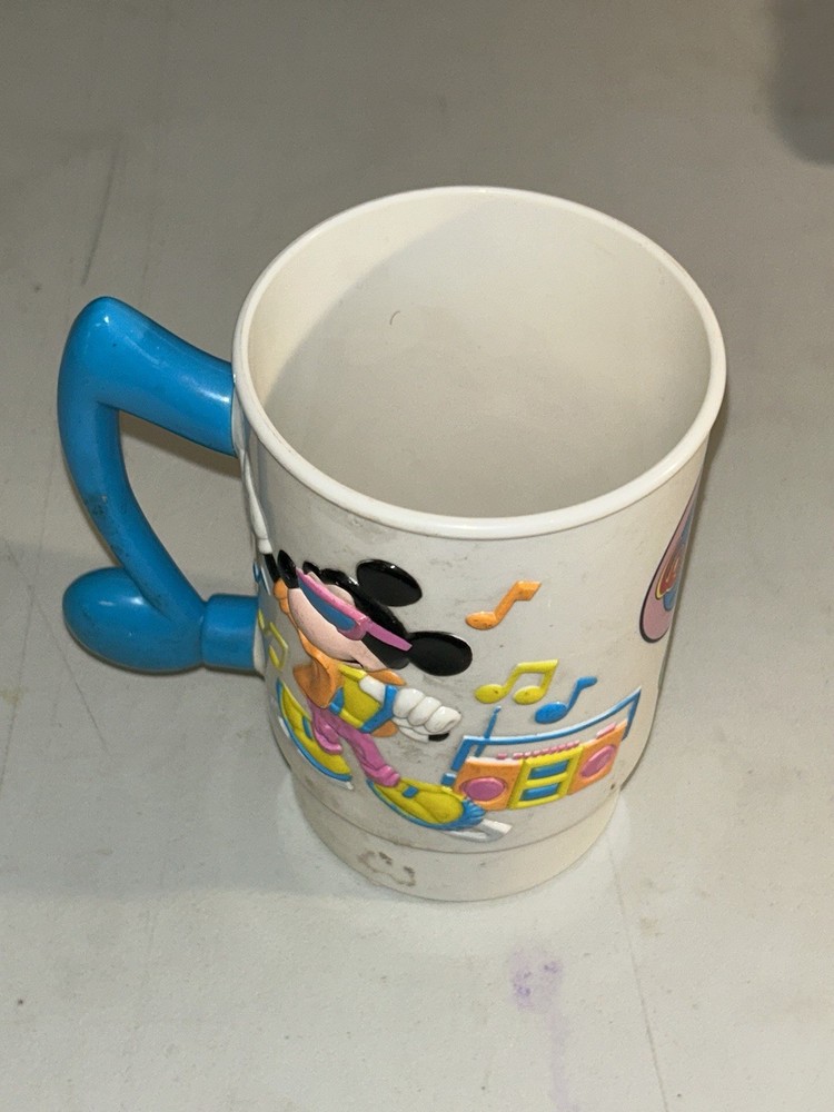 Immerse yourself in a touch of nostalgia with the Vintage 1981 Disney World on Ice Disco Mickey Super 3-D Mug. A true gem for collectors and Disney enthusiasts alike, this mug showcases the iconic Mickey Mouse in a vibrant, three-dimensional design that captures the magic of the era. Crafted by Disney, this mug is a rare find representing a beloved piece of memorabilia from the early 80s. Perfect for display or casual use, it serves as a charming reminder of the whimsical Disney World on Ice events that have captivated fans for decades.