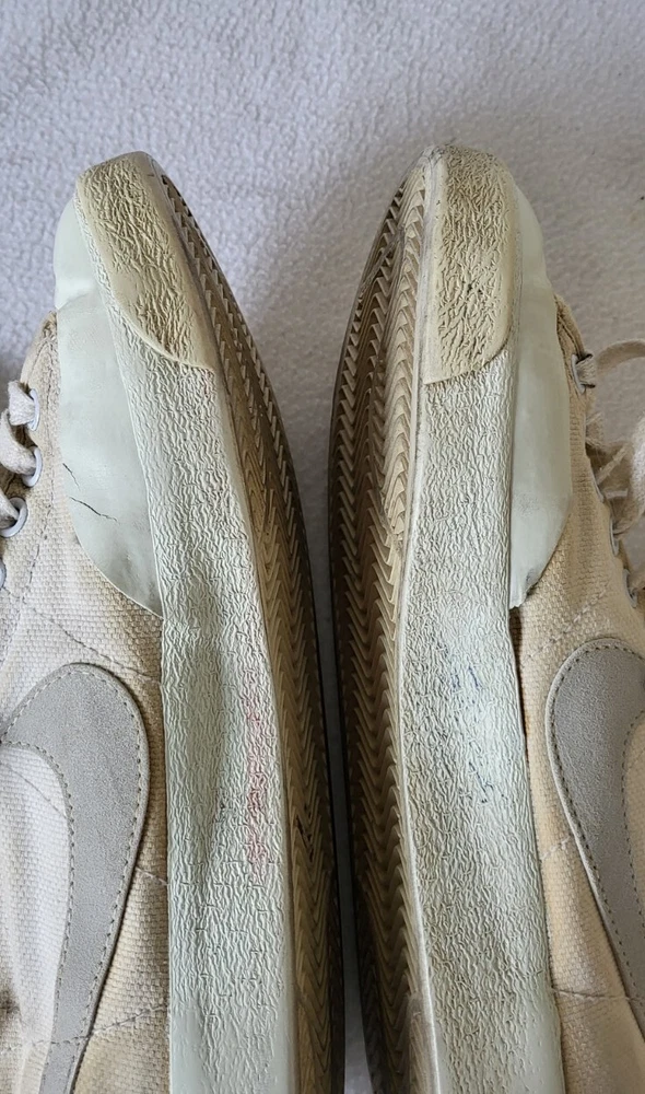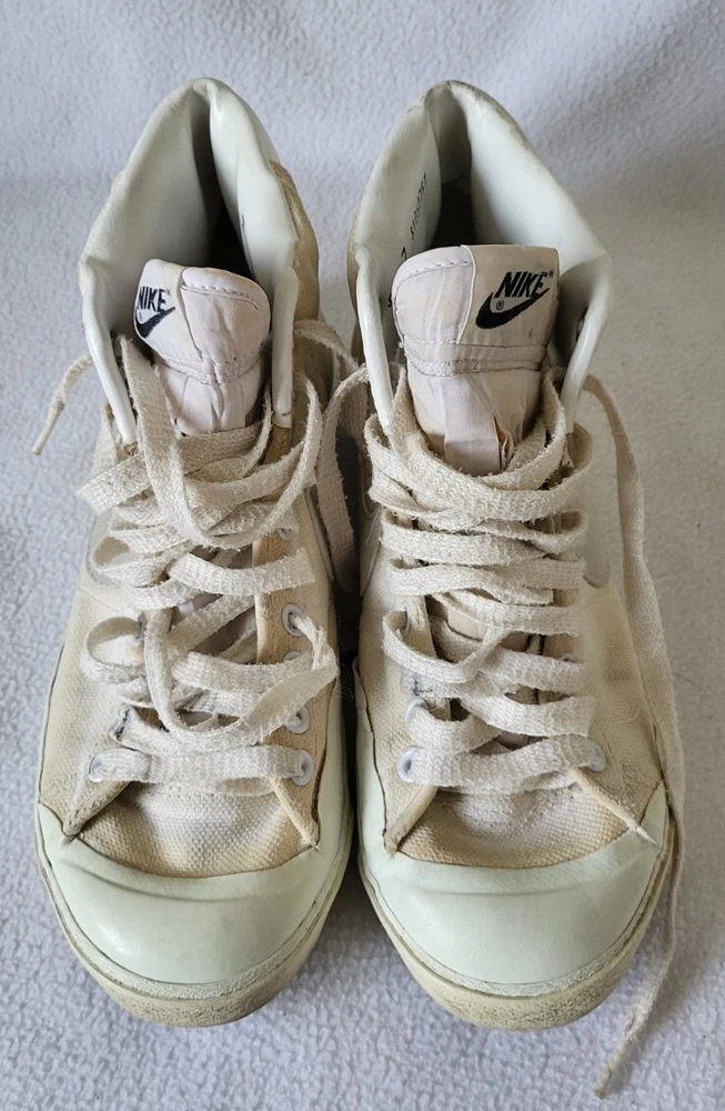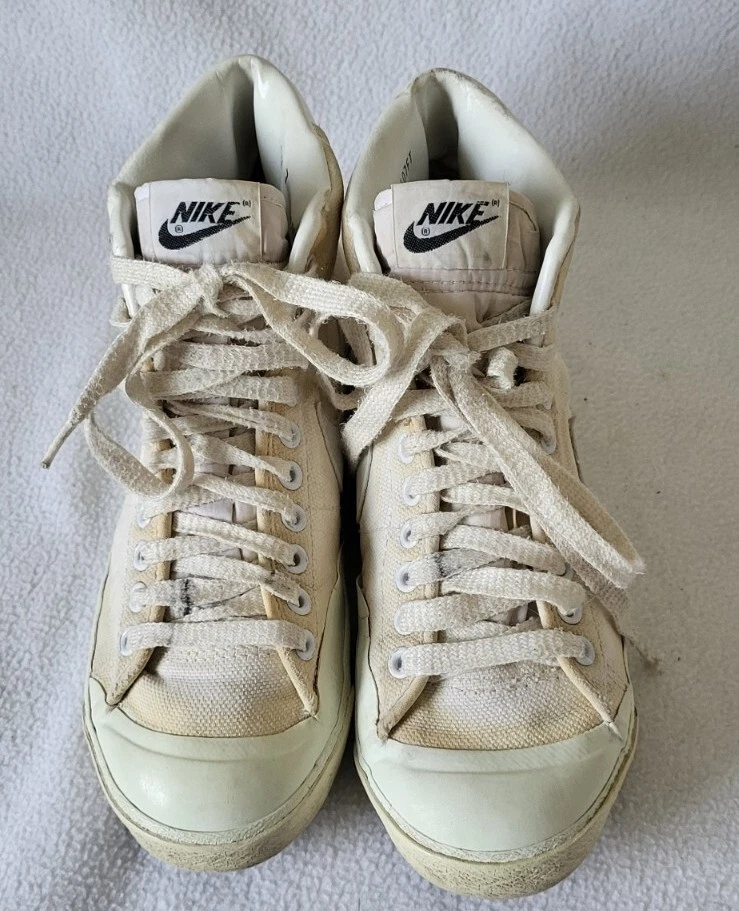 Vintage 1981 Nike All Court 810507FT Men's Sneaker Shoes Size 7. Cracking at some point midsole and insoles! I would NOT recommend to be worn as they're in that condition because of age! They seem to have the original insoles and laces as shown on pics Perfect for a business display or as you please! They DO NOT have the original box! At the time of shipping they will be packed in a double box! If you have any questions please feel free to do so! Thanks for looking at my other stuff Please follow 🙏