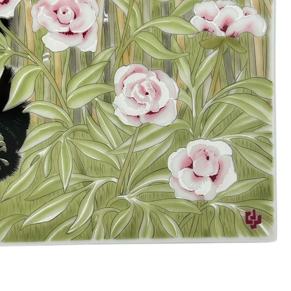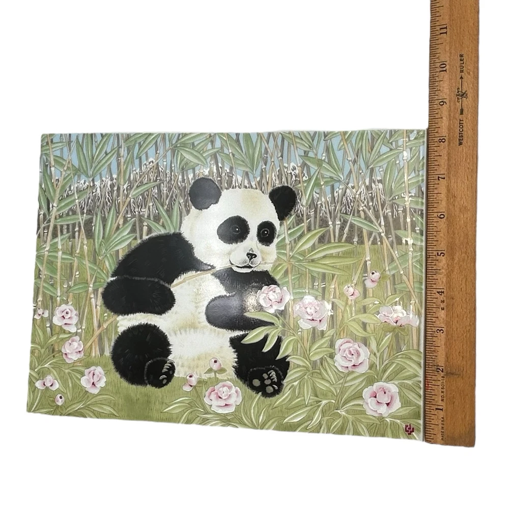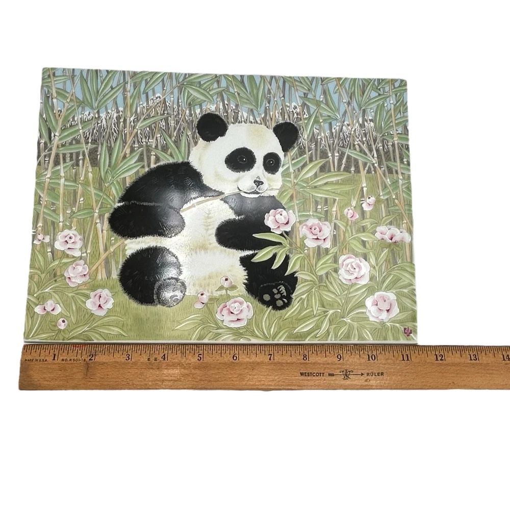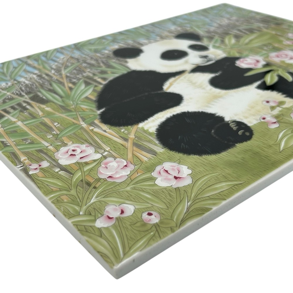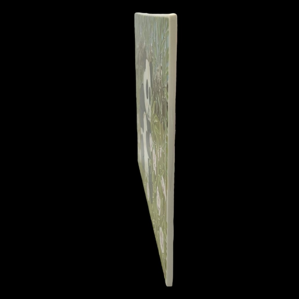 An original work of art in fine porcelain, "The Magic Grove" by Clarence Wilson depicts a magical garden in which the flowers glow in jewel-like colors, the sky is serene and cloudless, and a baby panda frolics in a sunlit bamboo grove high in the mountains. The vivid color of the peonies, the richness of the panda's fur and the fresh green of the grass are enhanced by the sheen of fine porcelain. Richness of color and translucence made works of art in porcelain highly prized during the past centuries. In Holland during the late 16th century, for example, porcelain houses were creating landscape and portrait plaques to hang as wall deco-rations. The subjects of these works suggest that skilled artists had been commissioned to create their designs. The use of decorative wall plaques soon spread to other European countries and to England as well, where flowers and ships became popular subjects. Porcelain may have been most admired in Italy, however, where entire rooms in such palaces as the Royal Villa at Portici were lined with decorative tiles. Among porcelain's unique properties is the fact that it never loses the richness and appeal of its colors. ABOUT THE ARTIST Born in Canada, Clarence Wilson studied art at the Ontario College of Art in Toronto and at the Art Institute in Chicago, Illinois. He was employed as a designer for the Stratford Shakespeare Festival in Canada and has worked and traveled in Japan, India England and South Africa. Now a resident of New York, he has earned international acclaim for the superb quality of his work. His portraits and murals can be found in ome of the world's most elegant residences, including the presidential mansion of thi Philippines and the French Embassy in London Condition: Minor Surface scratches upon close inspection w magnification. No notable wear. No chips cracks or crazing. Please see all images for further details. Be sure to see all our other items for possible bundle and shopping deals! Will pack with extra care and attention that vintage items require. Quick shipping guaranteed. Returns accepted at buyer’s expense. Display boxes and props not included unless otherwise noted. Own this lovely artwork! We are a reputable seller! Check out our reviews to see what customers say about our products and service. You won’t regret trusting Fairfield for your online purchase.