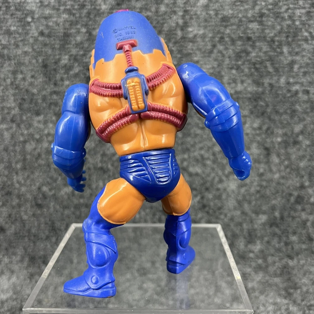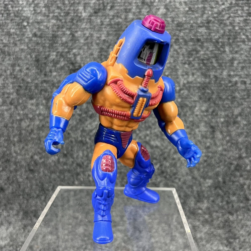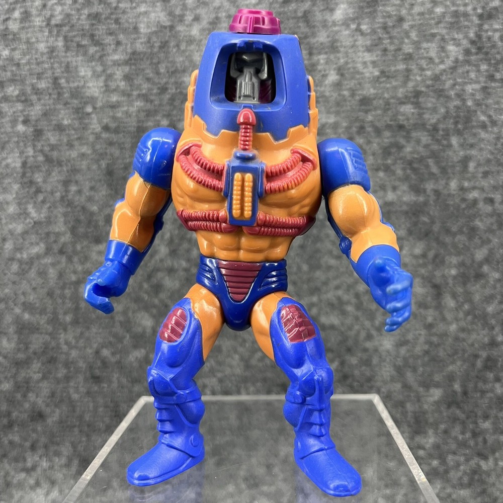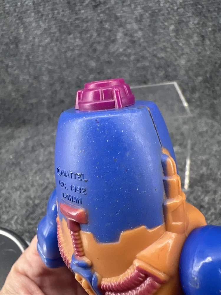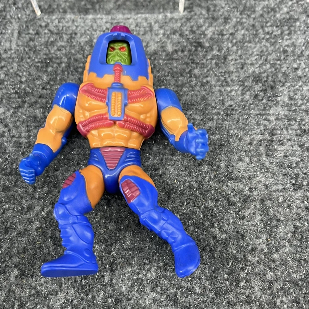 Vintage 1982 Mattel Man-E-Faces Action Figure MOTU He-man - this toy looks pretty good to be 42 years old… at least I think it does! The faces all turn , the torso turns, the arms move up and down and the legs move- he’s still able to stand on his own but he is a little wobbly and tends to lean forward a little. There is some scratching on the blue on the helmet but it’s not terrible and a little bit around the backs of his shoes. He will be carefully packed and shipped to you. Please refer to the pictures for further.