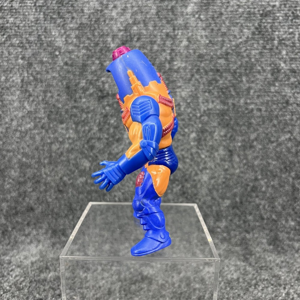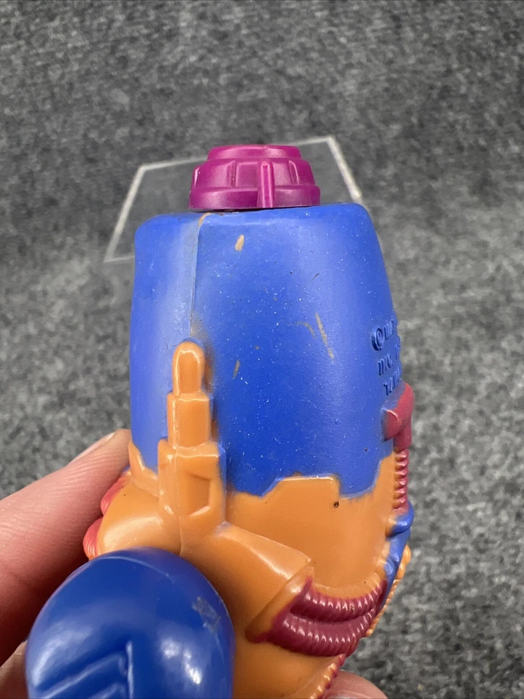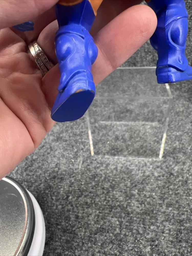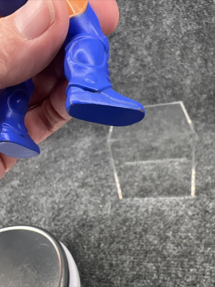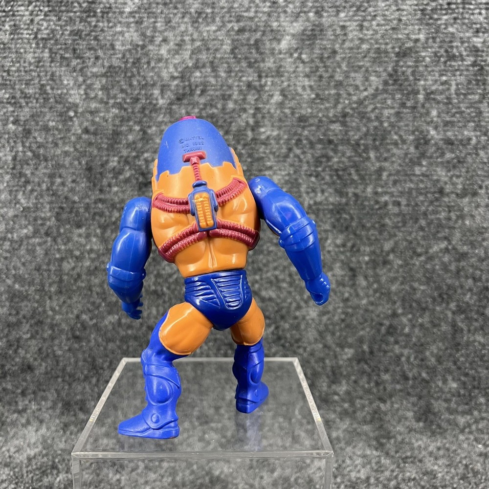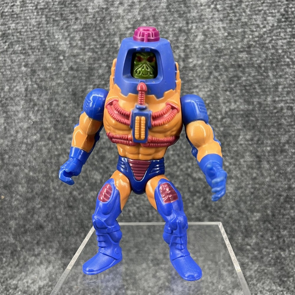 Vintage 1982 Mattel Man-E-Faces Action Figure MOTU He-man - this toy looks pretty good to be 42 years old… at least I think it does! The faces all turn , the torso turns, the arms move up and down and the legs move- he’s still able to stand on his own but he is a little wobbly and tends to lean forward a little. There is some scratching on the blue on the helmet but it’s not terrible and a little bit around the backs of his shoes. He will be carefully packed and shipped to you. Please refer to the pictures for further.