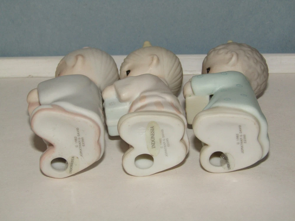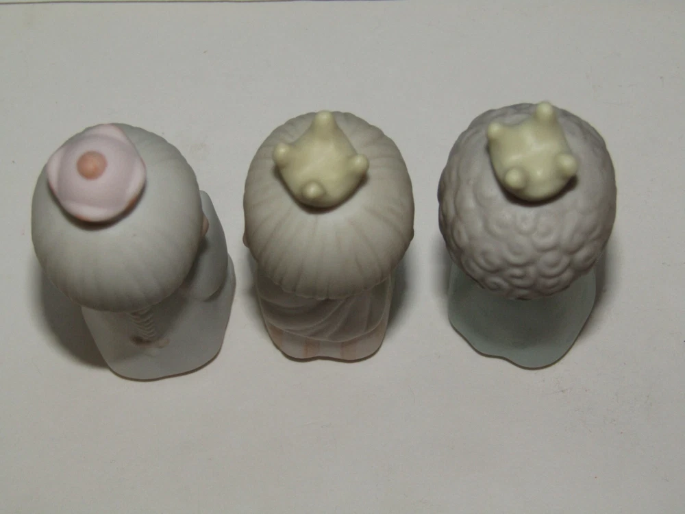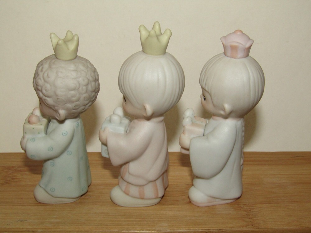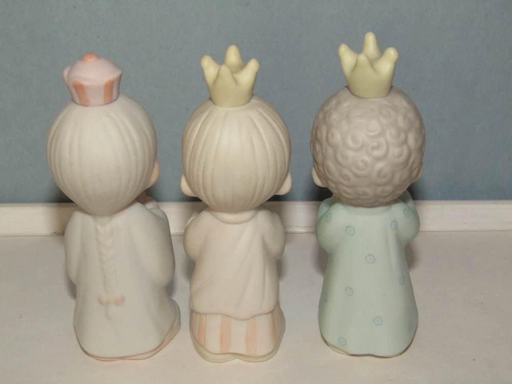 Offered in excellent, like new condition (sorry no box) is a set of three (3) Precious Moments Wisemen figurines from the 1982 Jonathan & David Enesco E2395 1982 set. Each piece is made from bisque porcelain and showcases the beloved Precious Moments characters in a multicolor design. Condition: Excellent (unboxed) condition with original labels on the underside and no damage or signs of use. They are small in size with the tallest wisemen measuring approximately 3 1/2" tall to the top of his crown. Thank you for looking and please feel free to message us if you have any questions. They will each be individually wrapped in bubble pack and fully insured against loss or damage in transit for a guaranteed safe arrival. Ships from Seattle, WA via your choice of Fed-Ex Economy with a 2-8 business day delivery estimate or USPS Ground Advantage with a 3-5 business day estimated delivery.