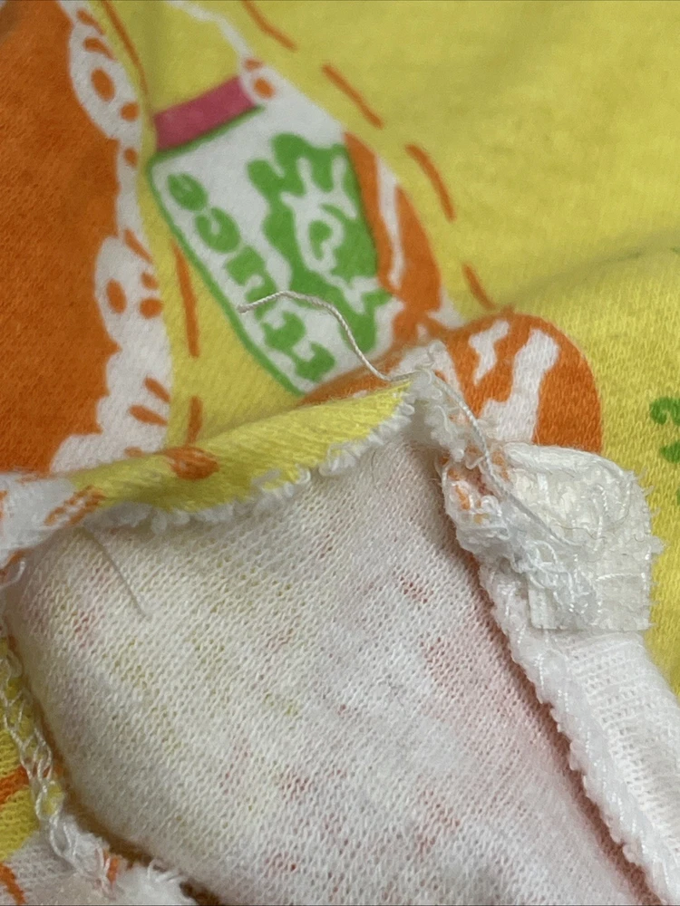 VGUC for age. Does have some wear due to age and play. One seam the stitching came apart on the shoulder, see photo of close up. No rips or tears some mild fading I believe as I cannot confirm the brightness of the romper brand new smoke-free home I use calculated shipping, so buyers only pay the actual shipping costs I incur. This approach helps keep expenses low for the buyer.