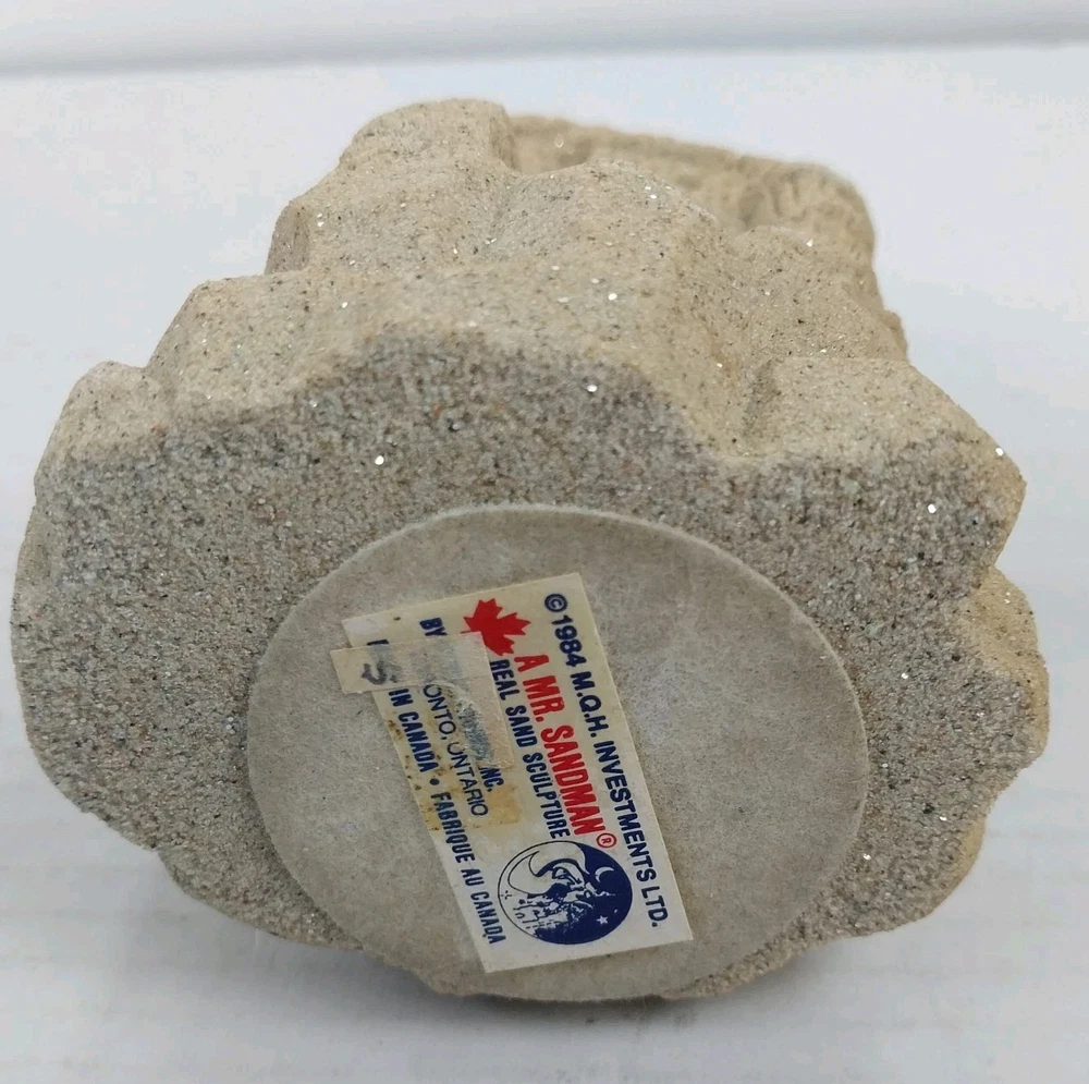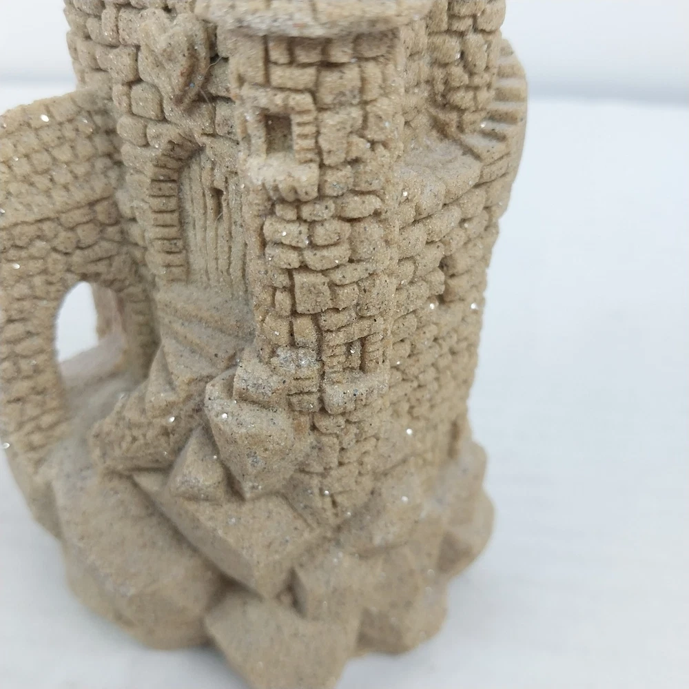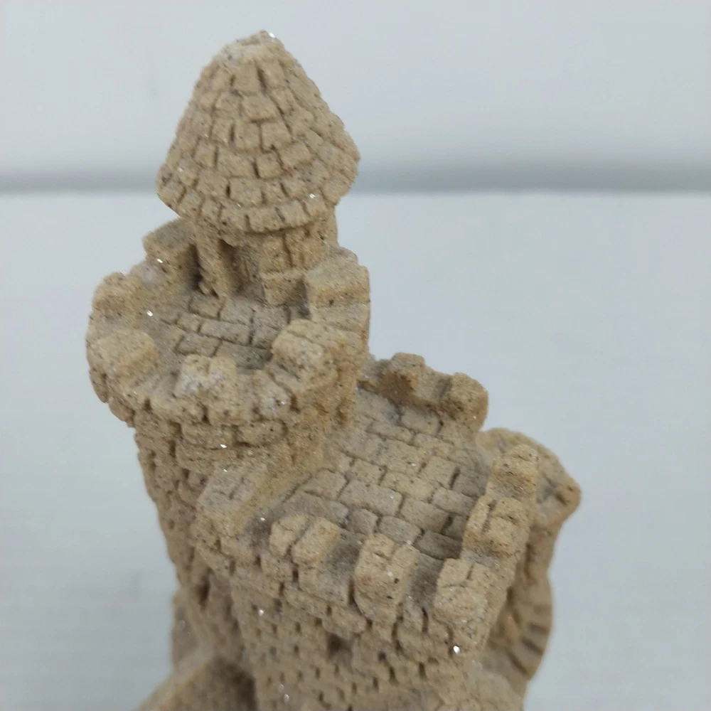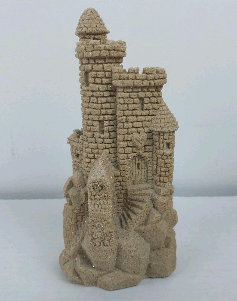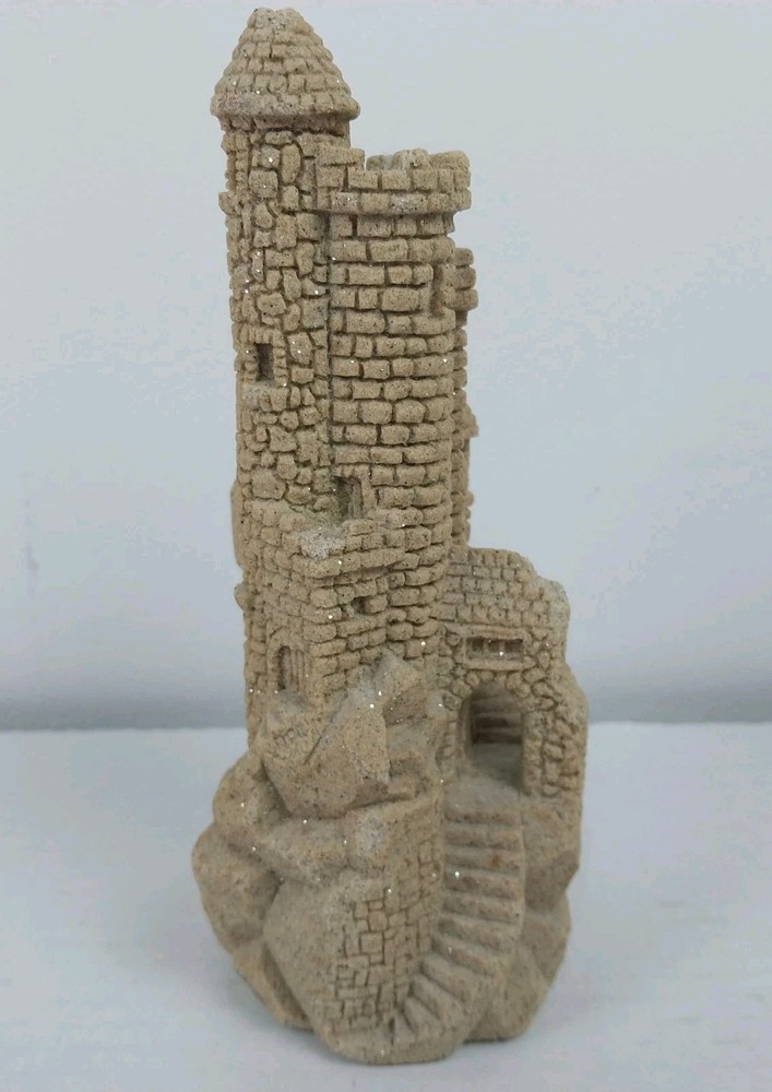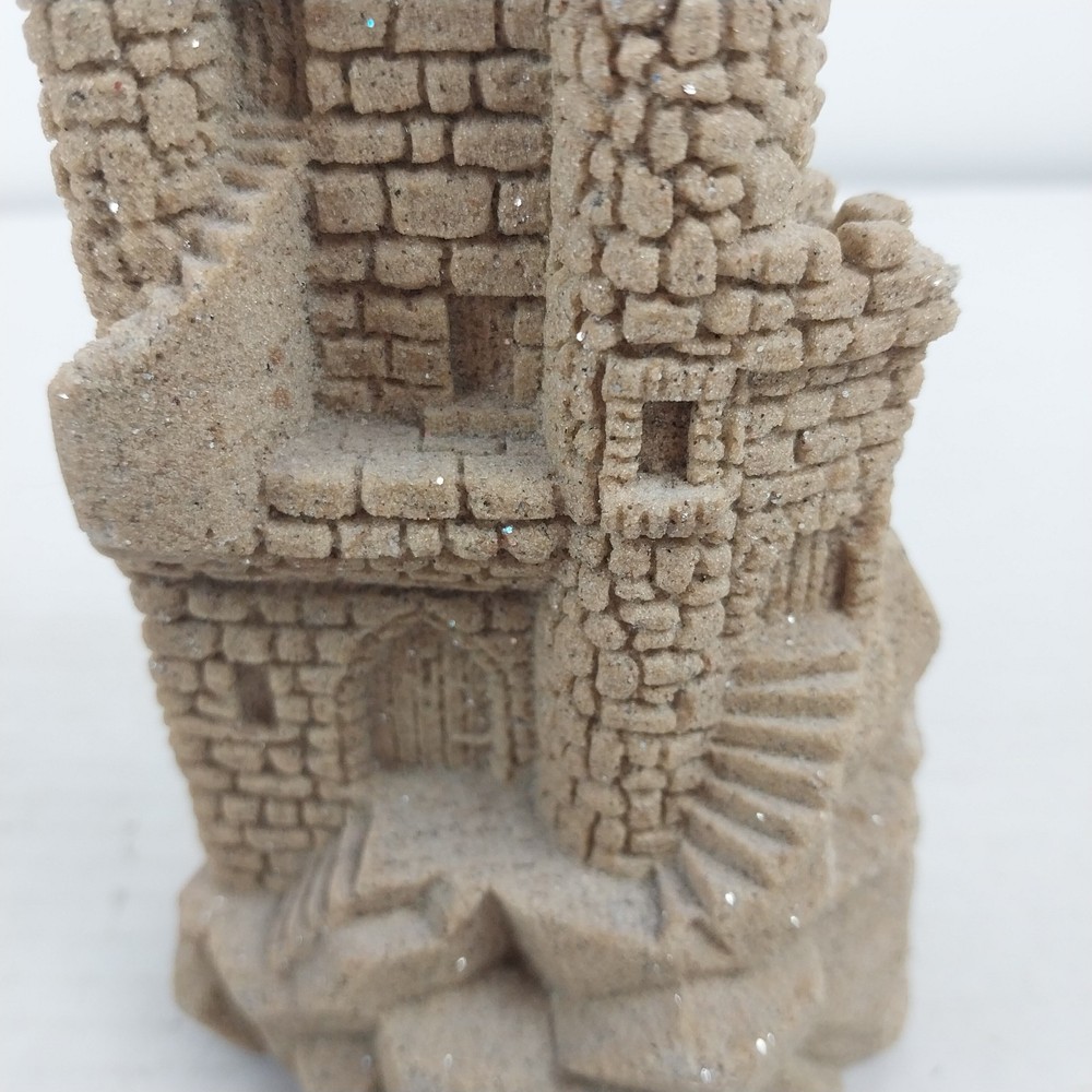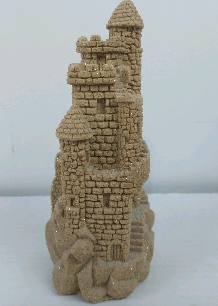This vintage sculpture from M.Q.H. Investments LTD. is a unique piece that will add character to any room. Made in 1984, this medium-sized sculpture features a sandy beige color with a textured finish, creating a 3D effect. The sculpture depicts a castle, with intricate details that give it a fantasy and nautical theme. Perfect for all occasions, this sculpture will complement any decor, from art deco to classic. It is an original piece, made with resin and sand, and is an excellent addition to any collection. This sculpture is suitable for teens, adults, and kids.