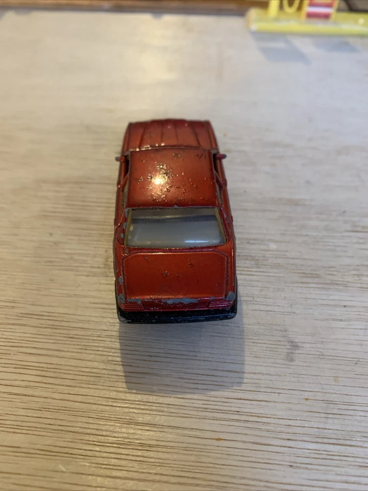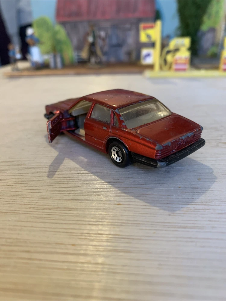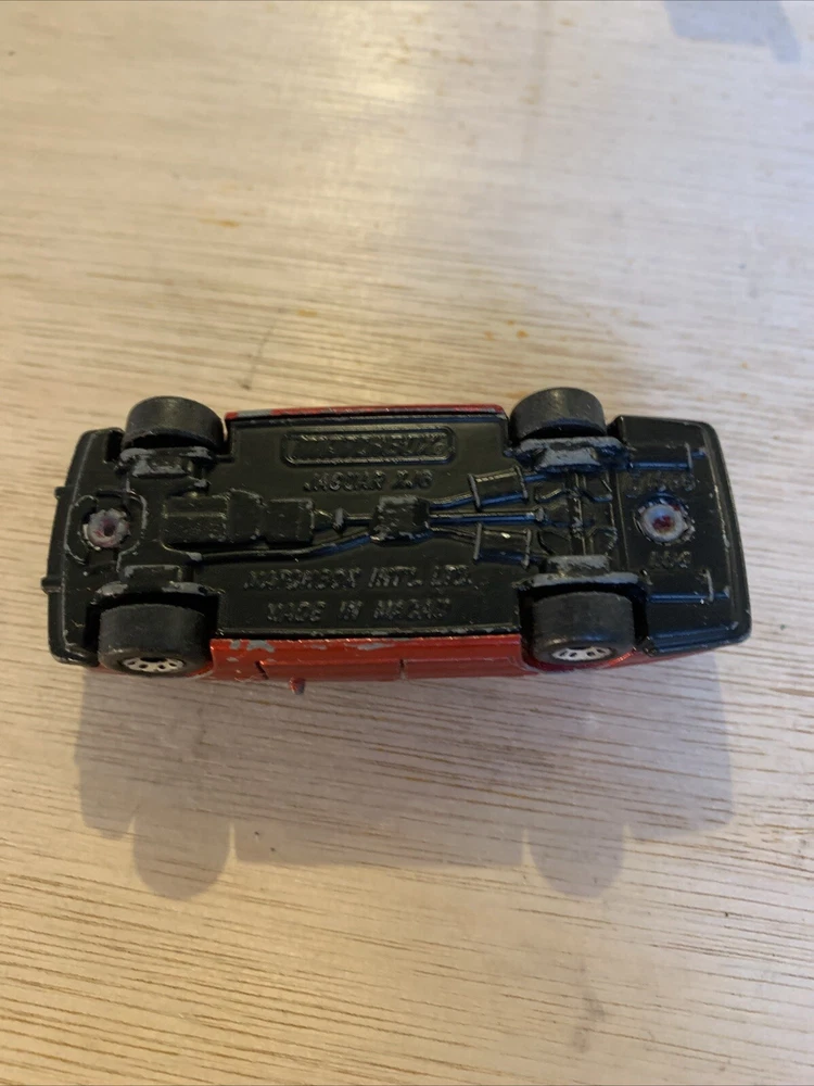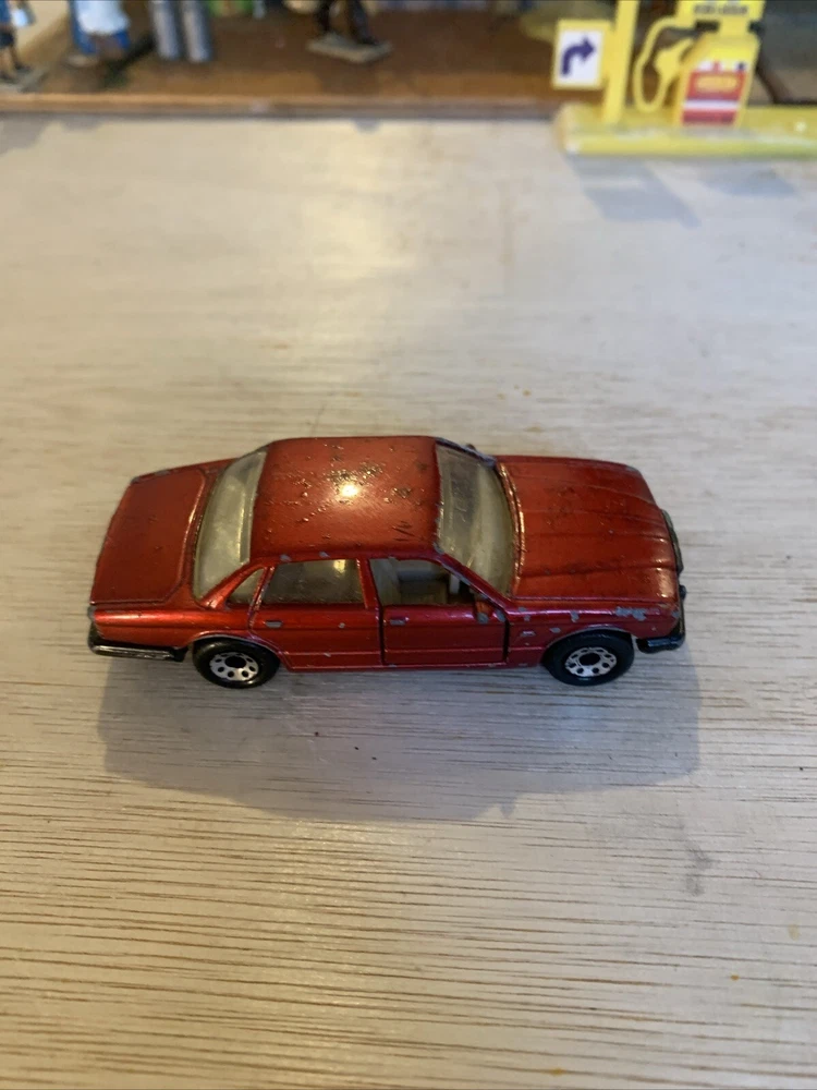 This is a vintage 1984 Matchbox Jaguar XJ6 diecast car in red. It is a rare model with opening doors, representing a classic Jaguar vehicle from the 1980s. The scale of the model is 1:64, making it a detailed and collectible piece for car enthusiasts. Made of diecast material, this Matchbox toy car captures the essence of the original Jaguar XJ6 in a smaller scale, perfect for display or play. Used condition