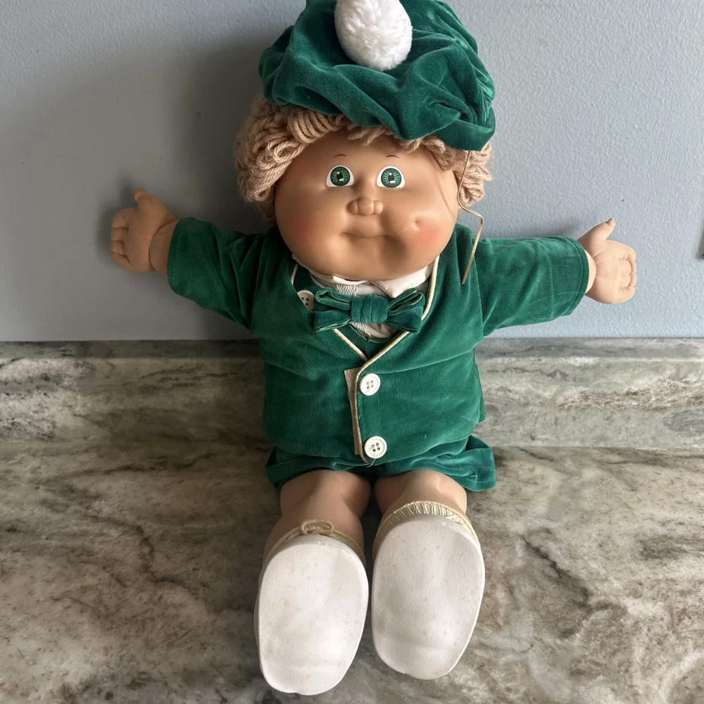 Vintage Set of Cabbage Patch Twins in Green Velvet #479 Preowned.