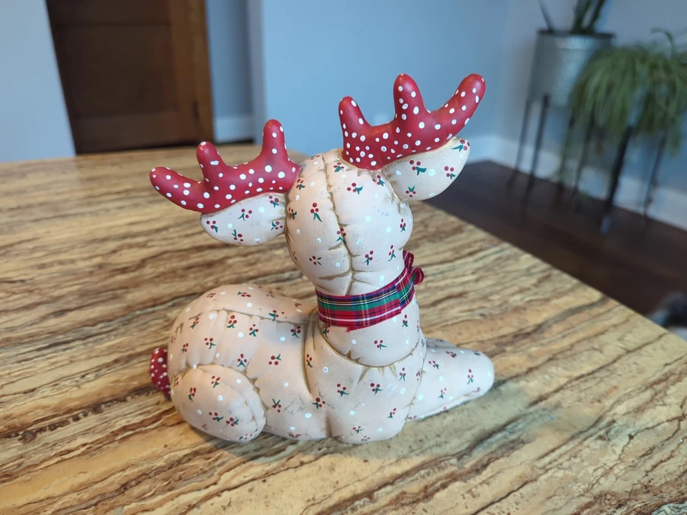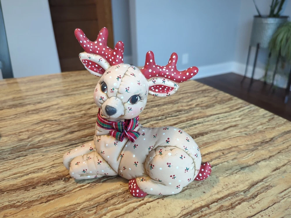 Brand:kimpleCare Instructions:Clean with Dampen ClothFeatures:Hand Painted, Quilted lookTime Period Manufactured:UnknownPattern:QuiltedShape:DeerClosure Type:NAHandmade:YesUPC:Does not applyAdditional Parts Required:NoRoom:Any RoomEra:Late 20th Century (1970-1999)Material:Ceramic & PorcelainOccasion:ChristmasStyle:RetroFinish:MattType:FigurineCountry/Region of Manufacture:United StatesSubject:ReindeerTheme:Seasonal, 70s, 80s, Christmas, Kitschy, Reindeer, RetroSize:MediumGlassmaking Technique:NACharacter:ReindeerPackaging:UnboxedNumber in Pack:3Color:Multicolorgtin13:Does not applyYear Manufactured:1986Suitable For:Christmas DecorCollection:NA