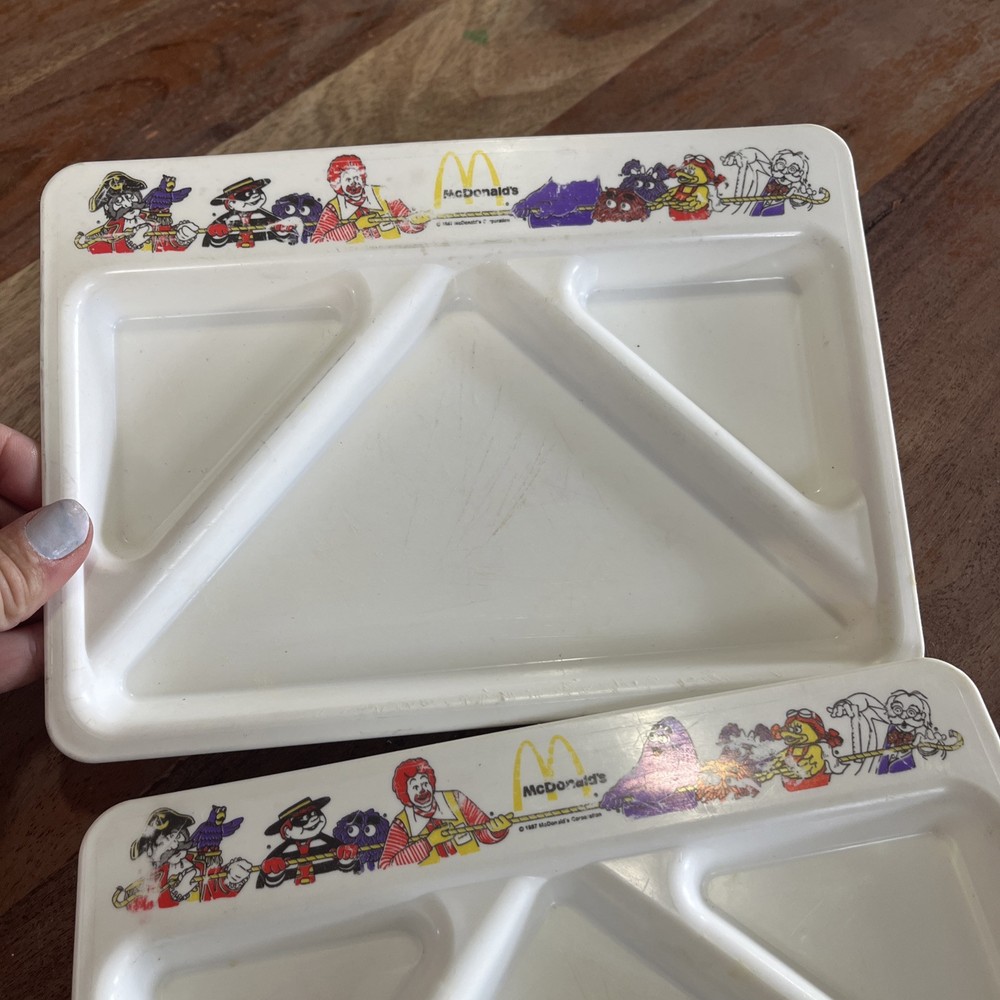 This vintage McDonald's Happy Meal plastic child character serving tray plate from 1987 is a must-have for any collector of restaurant and fast food memorabilia. Featuring a colorful design and the iconic McDonald's logo, this original piece is made in the United States and is in excellent condition. Perfect for display or use, this snack plate is a great addition to any collection. 9” long 6.25” tall