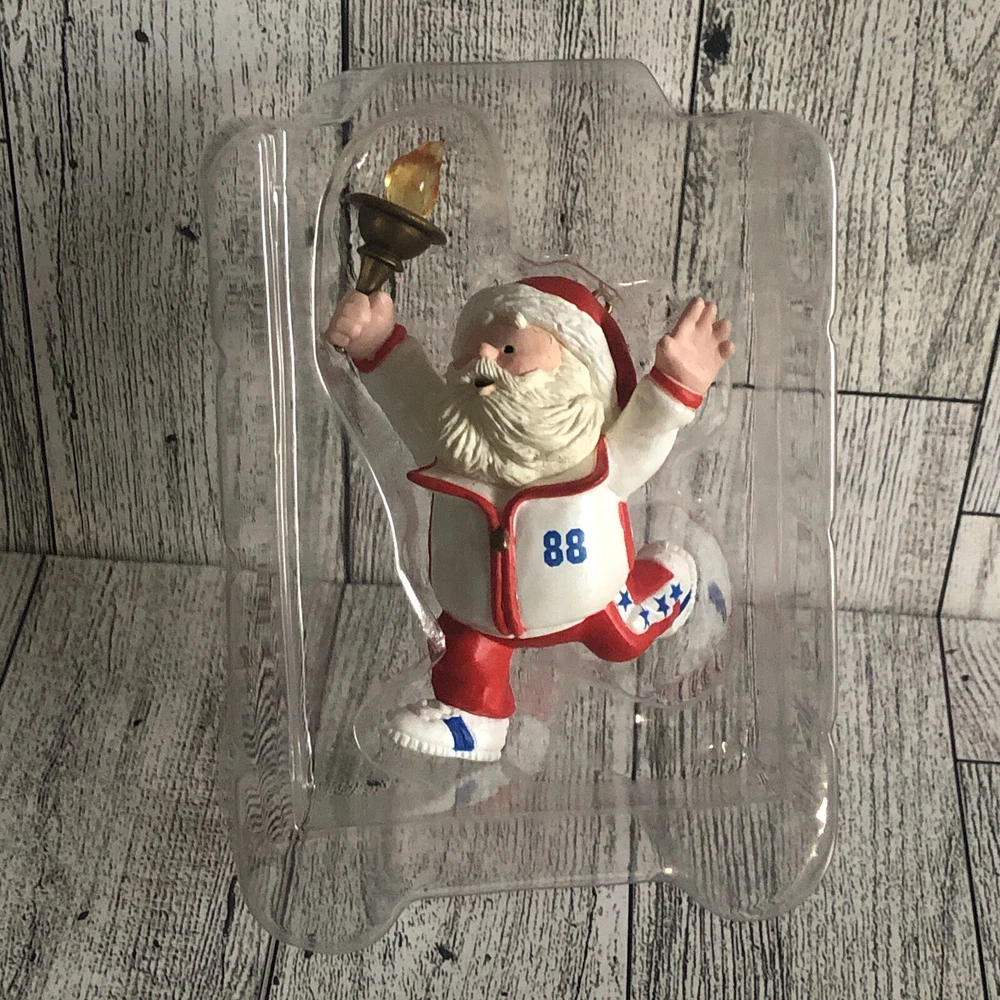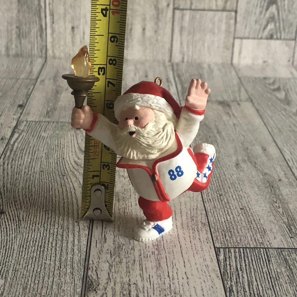 This vintage 1988 Hallmark Keepsake Ornament features a jolly Santa Claus in his Olympic attire, ready to go for the gold. This small ornament is perfect for adding to your Christmas tree or collecting as a unique piece. The mixed materials and multicolor design make it a great addition to any holiday décor. With no pattern and no personalization, this original ornament is perfect for anyone over 18 years old. It comes from China and is part of the Ornaments collection. Whether you're a collector or just looking for a unique Christmas decoration, this Hallmark ornament is a must-have. Comes in original box and display. Both is in good condition, light wear from storage. Preowned, in excellent condition. No noted chips or cracks, although paint could be irregular in places so please look carefully at all pictures and item description before making your purchase. Box and Display are in good condition, light wear from storage. Measurements are in the photos. If you have any questions please send me a message. Come from a smoke-free and pet-free home. Always ship fast! Offers Welcome! Check my other listings for more great deals! Thank you for stopping by and happy shopping!