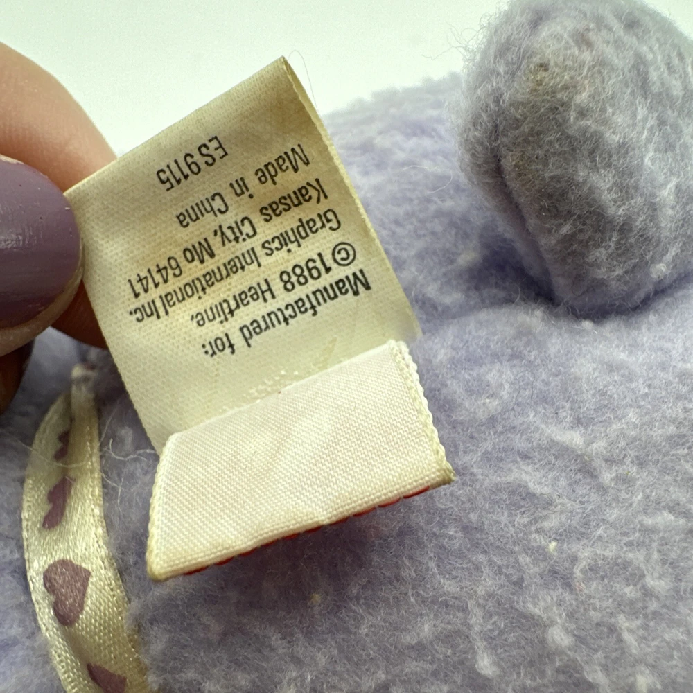 Animal: Bunny Color: Purple Brand: Heartline Seller Notes: “Pre-owned. Definitely dirty and worn. Cleaning left to buyer. See measurements and pictures.” UPC: na gtin13: na Occasion: Easter Size: Small (6-14 in) Year: 1988