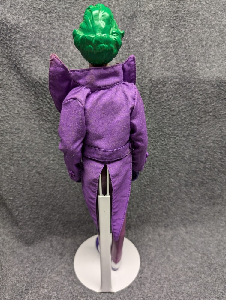 Introducing the 13 inch Joker figure from DC Universe with a stand included. This action figure is a must-have for any comic book hero collector. The figure stand is perfect for display, showcasing the Joker's menacing presence in any setting. Crafted with attention to detail, this figure is a true representation of the Joker character, It is made of vinyl which is very durable, making it a great addition to any collection. I listed it as used but it has not been played with and has only been on a shelf for display. It was manufactured in 1988. Don't miss out on the opportunity to own this classic piece of DC Universe memorabilia.