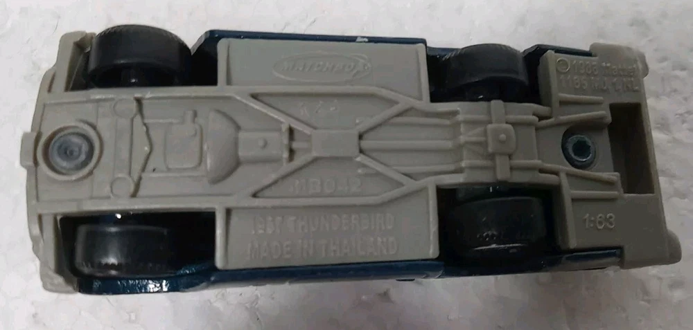 This vintage Matchbox car is a 1988 release of a 1957 Ford Thunderbird in a striking blue color. Made of metal in a 1:63 scale, it is a collectible piece from Thailand. Suitable for ages 3 and up, this classic toy vehicle is part of the Diecast & Toy Vehicles category, appealing to collectors and enthusiasts of vintage manufacture cars. Ideal for boys aged 4 to 16 and even adults, this iconic model is a nostalgic piece that captures the essence of the original Thunderbird design.