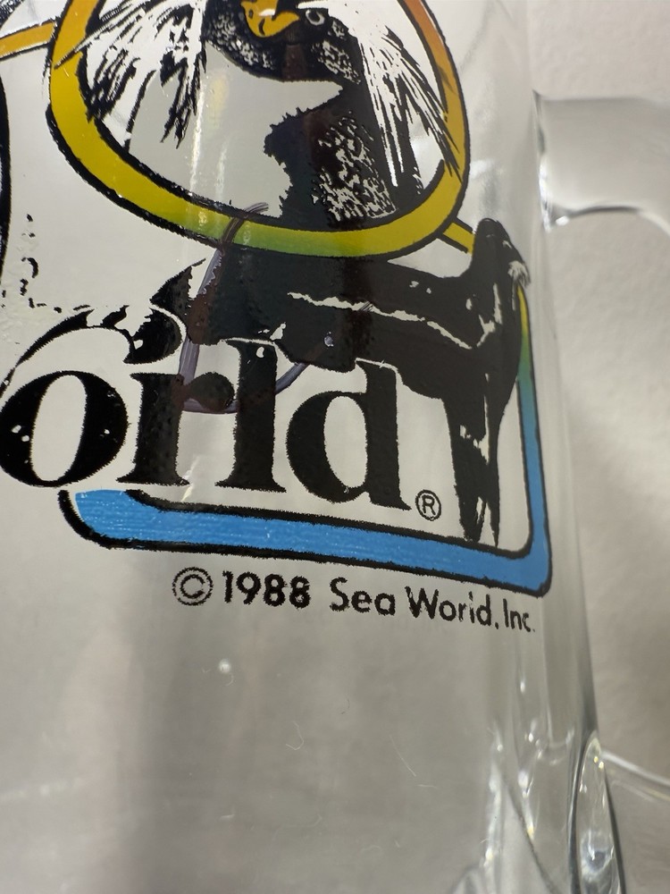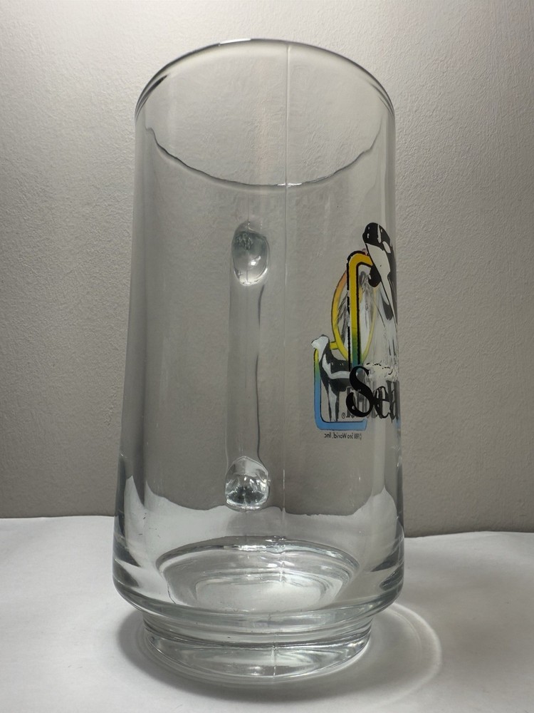 Vintage 1988 Sea World Shamu Clear Glass Handled Souvenir Mug