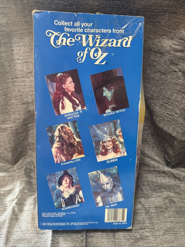 Size:11 inPackaging:Original (Unopened)Time Period Manufactured:1980-1989Unit of Sale:Single UnitOccasion:All OccasionsItem Width:2 inItems Included:Doll In Costume, BoxCharacter:The ScarecrowProduct Line:Wizard of OzYear Manufactured:1988Franchise:The Wizard of OzBrand:1988 Turner Entertainment Co.Item Height:14 inFeatures:BoxedMaterial:Cloth, Fabric, PlasticsNumber of Items:2Original/Licensed Reproduction:OriginalAntique:Nogtin13:0042408088754Set Includes:Doll And BoxItem Weight:10 oz.Collection:The Wizard of OzTheme:DollsAge Level:Ages 3 And UpEye Color:BrownItem Length:6.5 inCountry/Region of Manufacture:ChinaType:DollVintage:YesDoll Gender:MaleUPC:0042408088754Animal Species:OzDoll Size:10.5 To 11 in