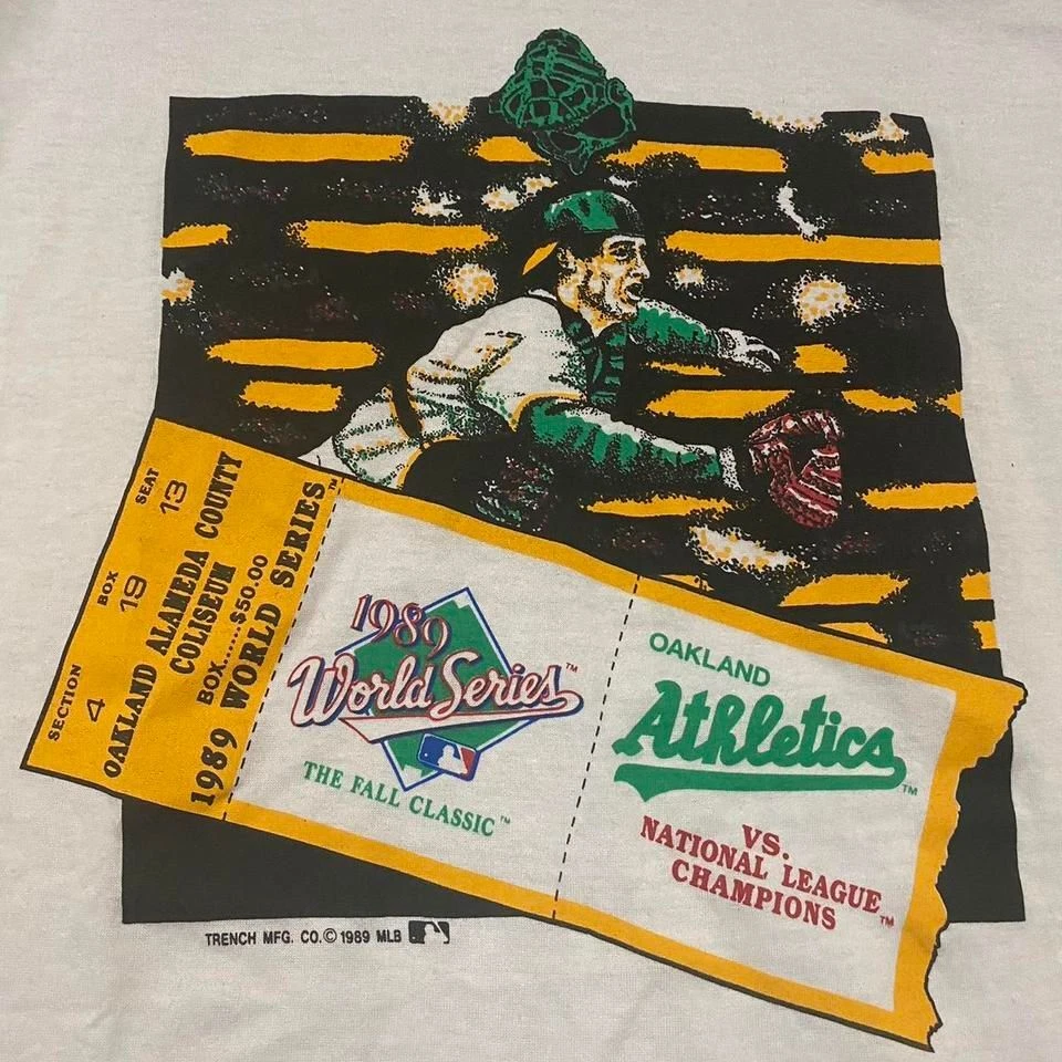 true vintage 1989 80s y2k big print oakland A's athletics mlb baseball sports white tee t shirt size: M medium condition: 9.5/10 — some small marks #oakland #mlb #baseball #vintage #80s