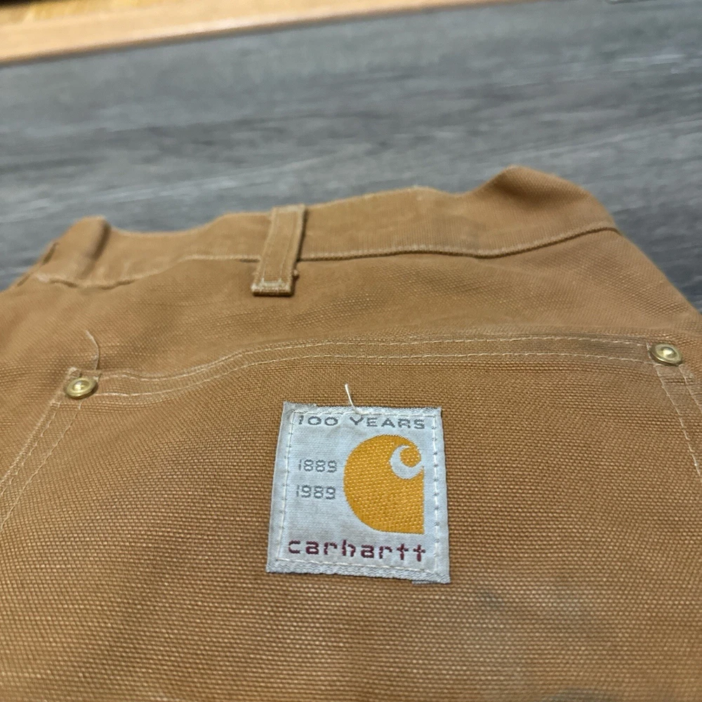 Vintage 1989 CARHARTT Tan Workwear Jeans Pants USAMade Red Quilted Lining Union Vintage 1989 Carhartt Lined Pants 100 Years Tagged Size 38x30 measurements fit 36x30 Great Fade & Wear & Stains Shown #carhartt #lined #vintage