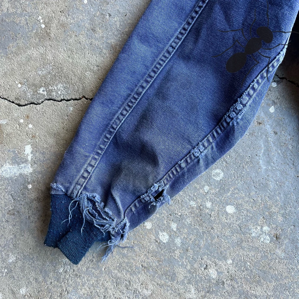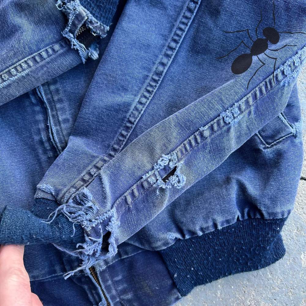 Vintage 1989 Carhartt blue Santa Fe distressed work wear jacket. Amazing wear!! The sleeves have holes and distressing see the pics please!! Beautiful jacket. Active lined. All around beaut of a jacket. 100 year Carhartt. Measures 24x26.5. I’d call this a medium personally, maybe was tagged large originally. Please check measurements before purchasing. I do my best to show any flaws in pictures. Quick shipping! Bundles encouraged! @ants_haul on Instagram.