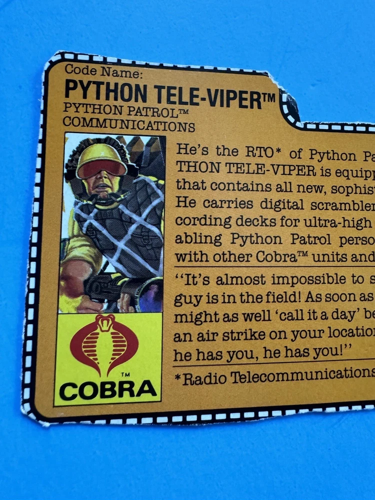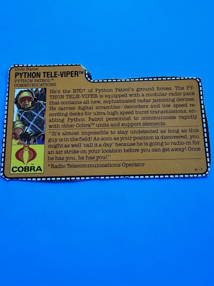 Vintage 1989 G.I. Joe Python Patrol TELE-VIPER v2 File Card Back ARAH Nice!