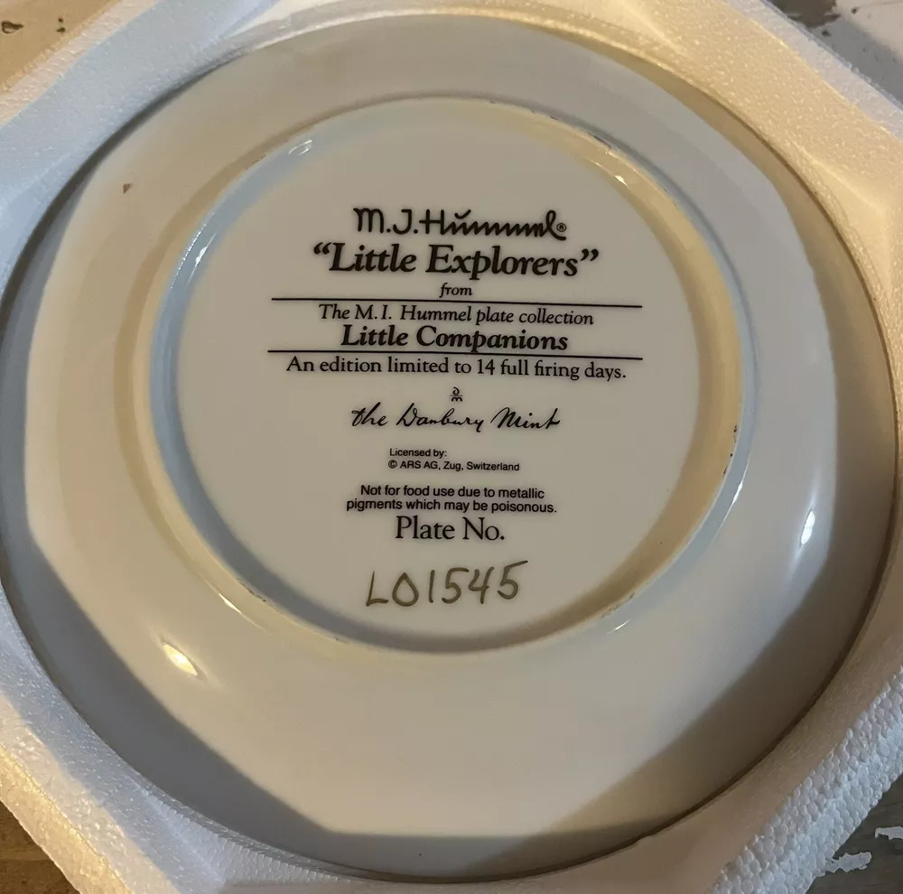 This is a vintage set of 12 collector plates from The Danbury Mint, featuring the M.I. Hummel Little Companions series. Each plate showcases a different scene of children, and is part of a product line that has become popular among collectors. The plates are a great addition to any decorative collectibles or collector plate collection. All plates are limited edition and part of a series that was only made for 14 firing days back in 1990. Each plate is numbered as well, helping to make this collection even more of a significant part of your collection. Each plate comes in its original packing as well, to help keep these plates safe during shipping as well as safe in your home when being stored as well. 1. Squeaky Clean 2. Private Parade 3. Tender Loving Care 4. Stormy Weather 5. Little Explorers 6. Hello Down There 7. Country Crossroads 8. Surprise 9. Apple Tree Boy & Girl 10. Budding Scholars 11. Come Back Soon 12. Little Musicians