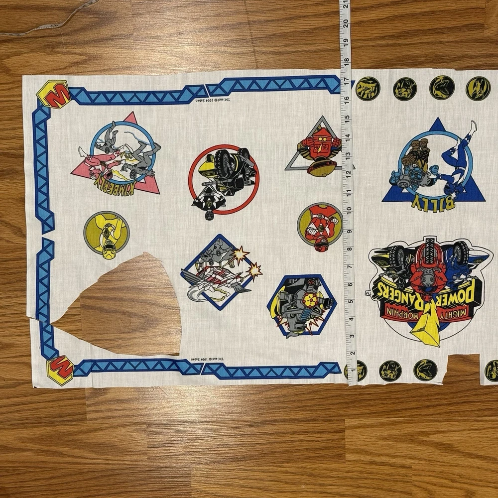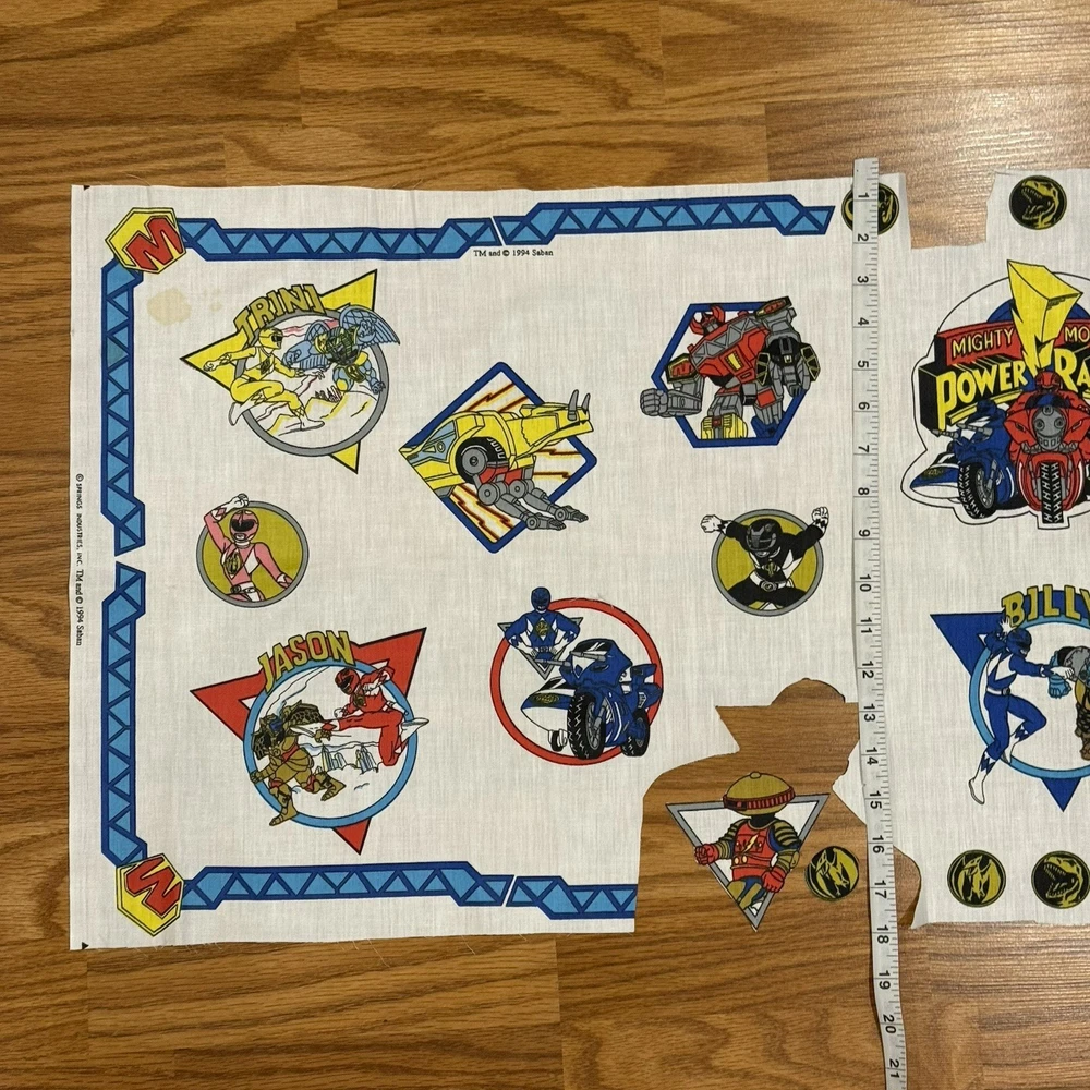 Vintage 1990s Mighty Morphin Power Rangers Cotton Fabric Panel for Crafting & Appliques