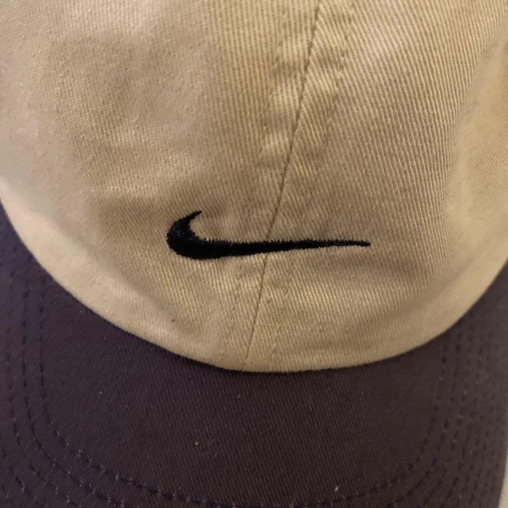 Vintage 1990s Nike Small Center Check Swoosh Adjustable Dad Cap Hat Beige