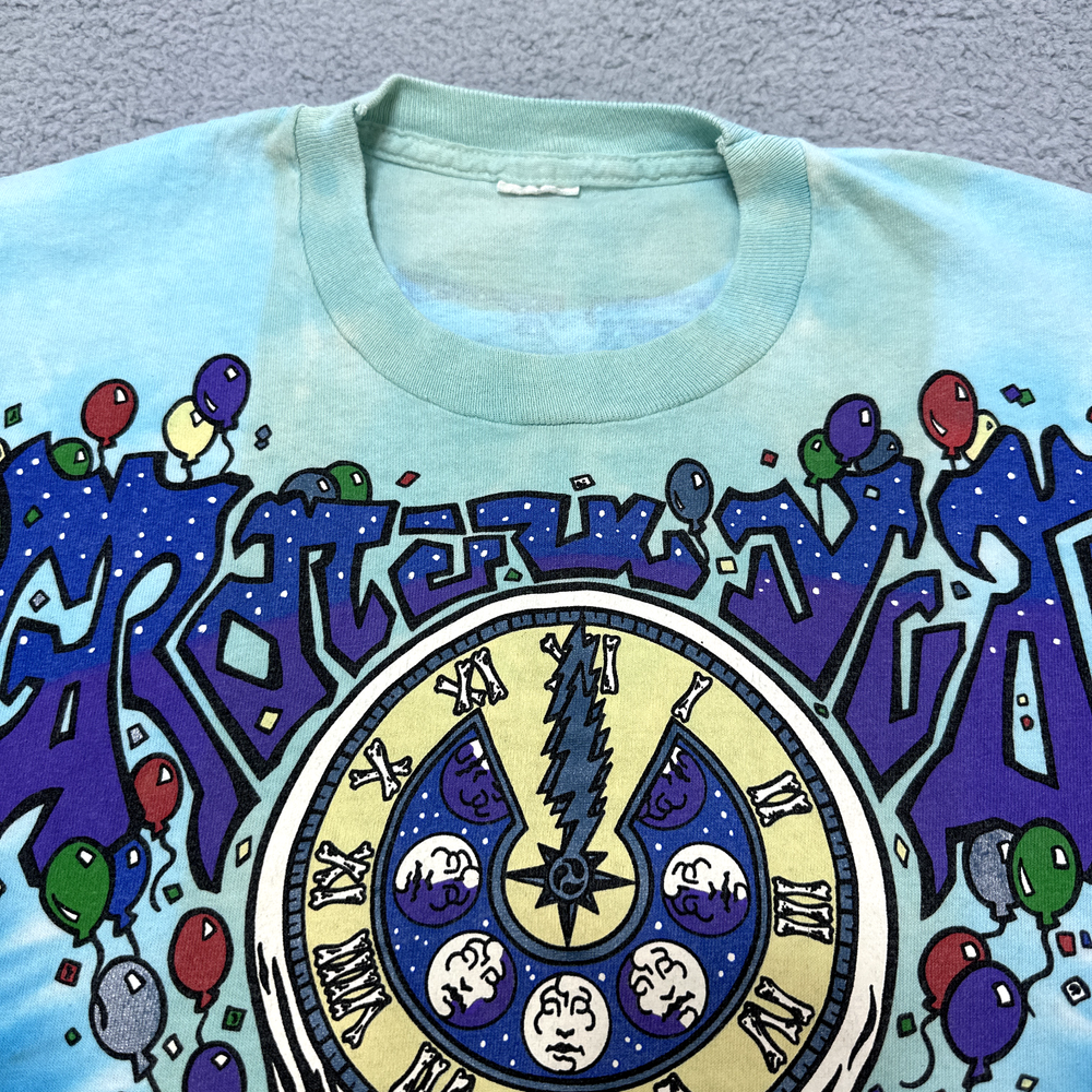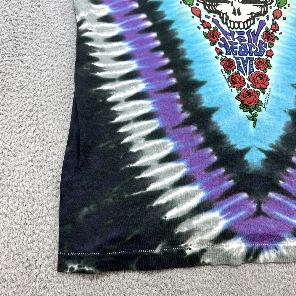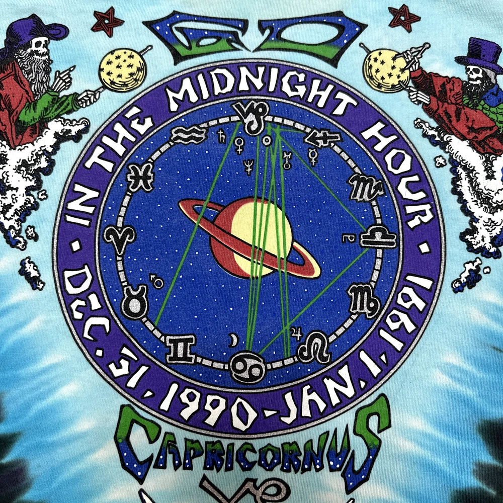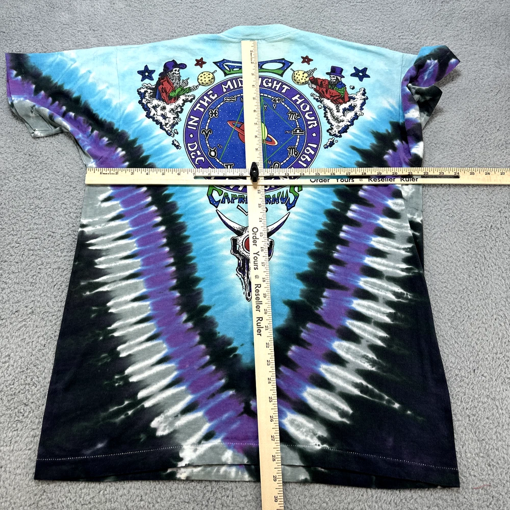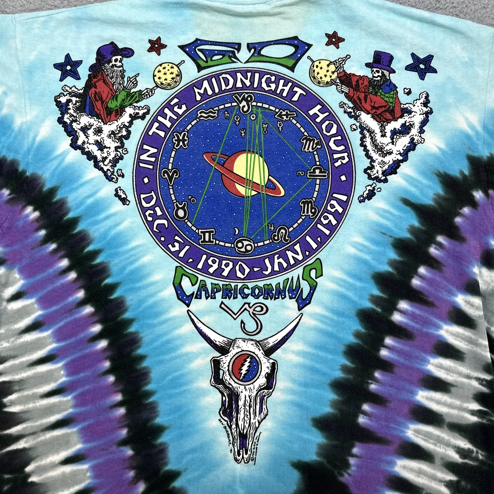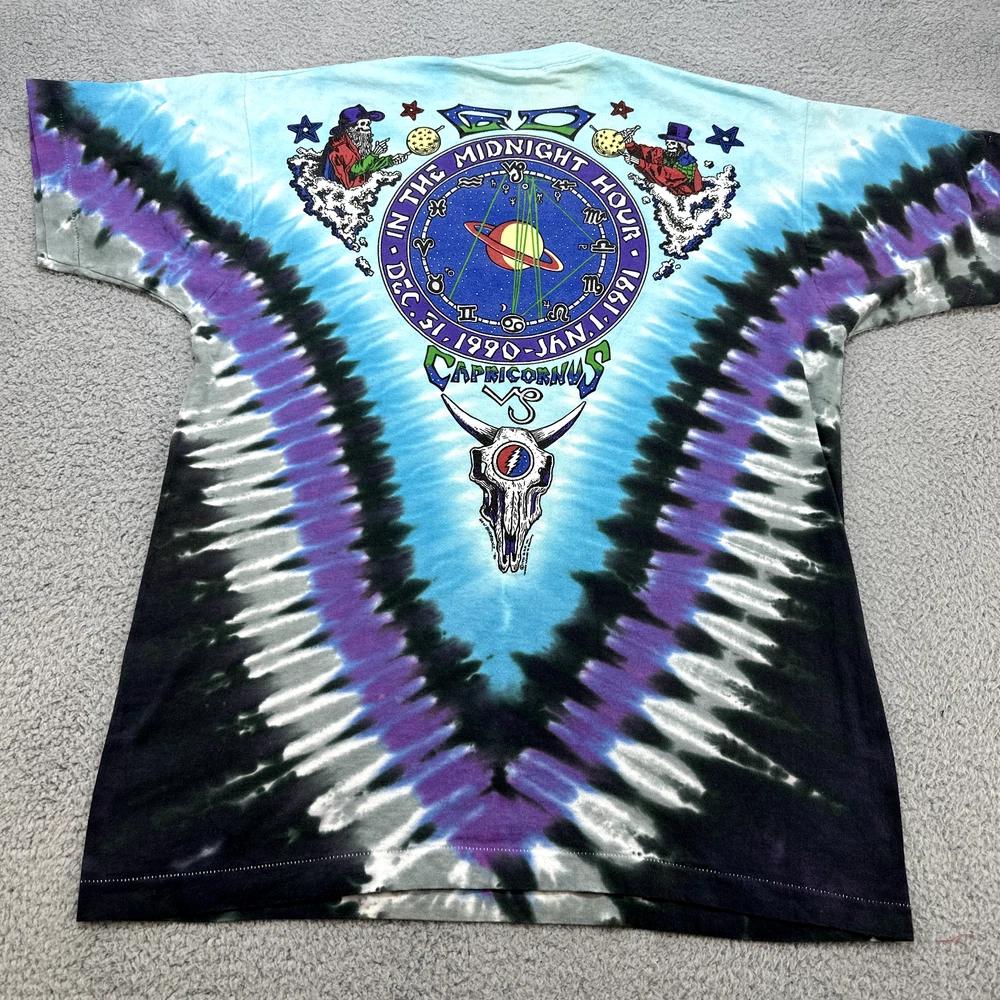 Vintage Grateful Dead Shirt New Years Eve 1991 In The Midnight Hour Single Stitch Capricornus Tie Dye. Original vintage 90s concert tees. Stain around the neck as shown. Pockets No Condition: Well cared for - Nice condition - No Neck size Tag and stain around neck area. Approximate Measurements in final photos. Stretch "Flex" in fabric (other than elastic elements): No Buy More & Save! Combined shipping for US customers - $1.99 each additional item (Add items to shopping cart and discounts will automatically calculate during checkout) * ALL PREOWNED CLOTHING HAS BEEN LAUNDERED PER EBAY'S POLICIES AND STANDARDS.*